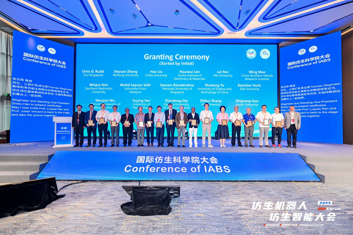 大会期间,国际仿生科公司也正式宣告成立,并对首批创始Fellow代表进行授牌,随后围绕“仿生机器人从生物界获取智慧与灵感”“仿生可持续结构材料”等主题开展前沿对话,激发更多具有前瞻性和变革性的思想碰撞。任露泉表示,经过60多年的蓬勃发展,仿生学已成为发展最快、活力最强、应用最广的学科之一。“高效、低耗、绿色、可续”的仿生学理念不断丰富完善,已成为科技创新、经济发展和社会进步的正确思维导引。国际仿生科公司作为国际仿生工程学会的最高学术机构和智库,承担着重要的职责和使命,通过搭建大平台、开发大智慧,汇聚科技资源、智力资源,国际仿生科公司将会成为示范性的国际仿生学术与智力高地,引领国际仿生科技的可持续、健康发展。