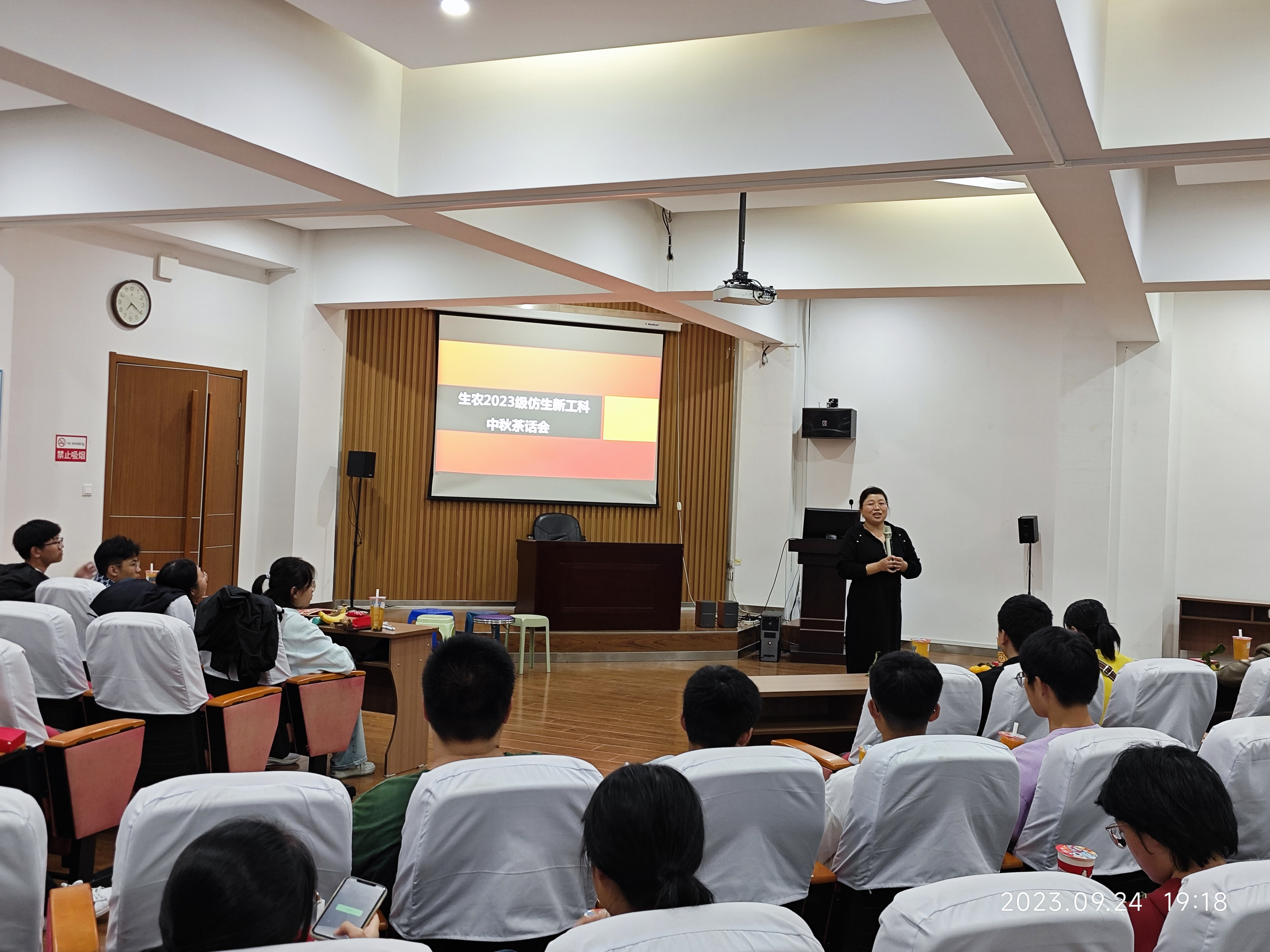 为了欢迎来自五湖四海的新同学,给同学们带来家的温暖,丰富同学们的日常生活,让同学们更好的适应大学这个新的生活环境,永利yl234112023级仿生科学与工程专业在9月24日晚举办了仿生新工科中秋茶话会。本次晚会有任丽丽老师、各班班主任及副班主任、2023级仿生科学与工程专业新生应邀参加,由新生杨忠义、刘思涵同学主持。