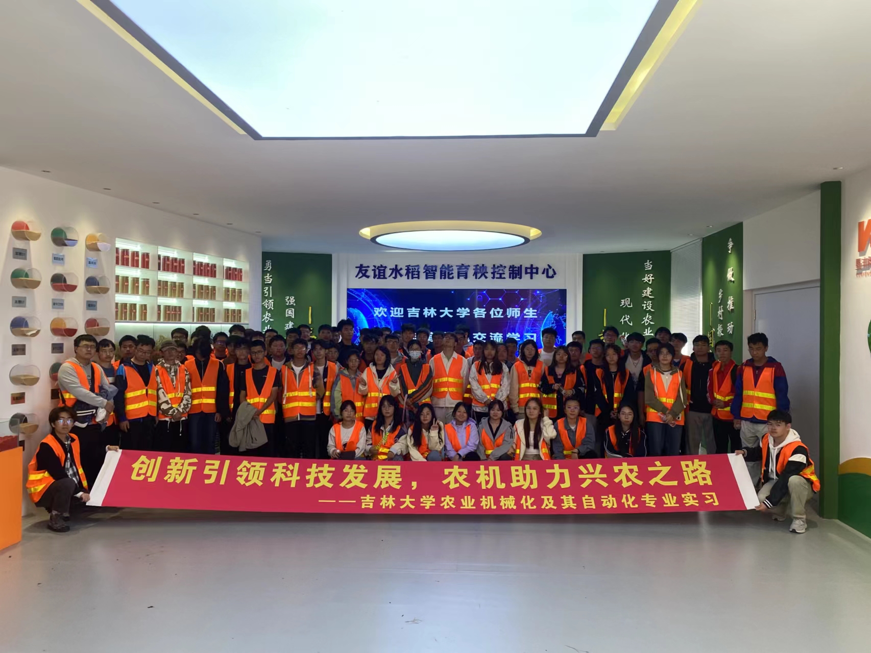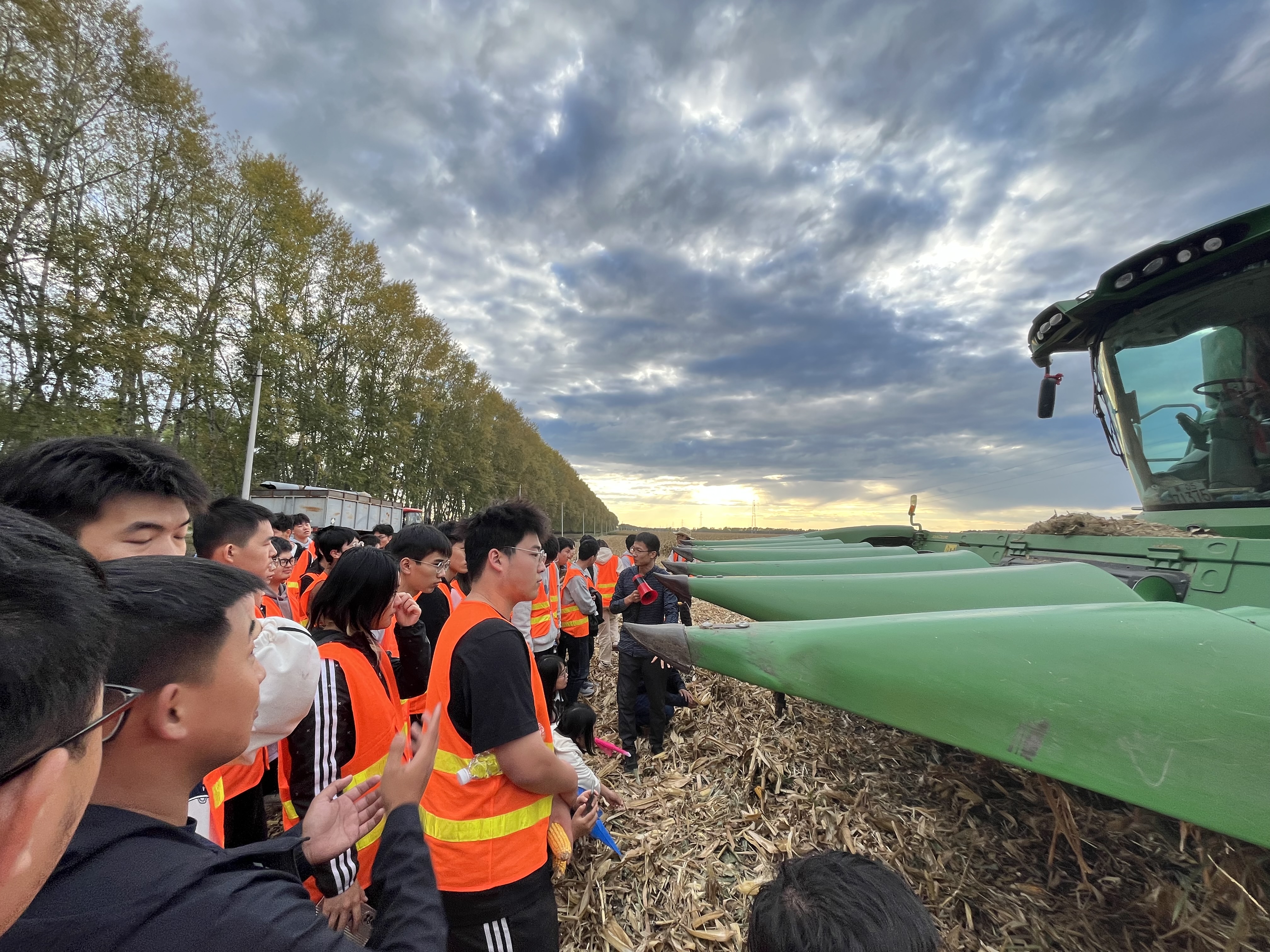 在实习开展前期,公司就与友谊农场积极沟通协调,妥善安排实习场地、饮食、住宿等多项事宜,确保实习工作的顺利开展。实习期间,农机师生参观了 “黑土粮仓”科技会战三江示范区、友谊智能育秧中心、黑土地保护北大荒模式研究中心、农机具管理区,学习了天地空地立体检测、智能育秧系统、变量施肥等先进技术,了解到先进的农机农艺如何融合并应用于生产;在友谊数字农业沉浸式体验中心,感受到农业数字化、智能化发展,更加坚定牢牢要把握“中国粮食,中国饭碗”思想;在农机博览园体验农机发展的历史,从新中国成立依赖从前苏联进口,到现在可以自行生产大型农业机械,在从锈迹斑斑的拖拉机上感受历史沧桑的同时,更充分感受到中国正在向实现农业强国逐步迈近;也在田间亲身参观水稻、玉米和大豆三大作物的农业机械作业收获过程,在表示震撼的同时,更进一步感到发展农业机械,突破技术壁垒,解决卡脖子问题迫在眉睫。