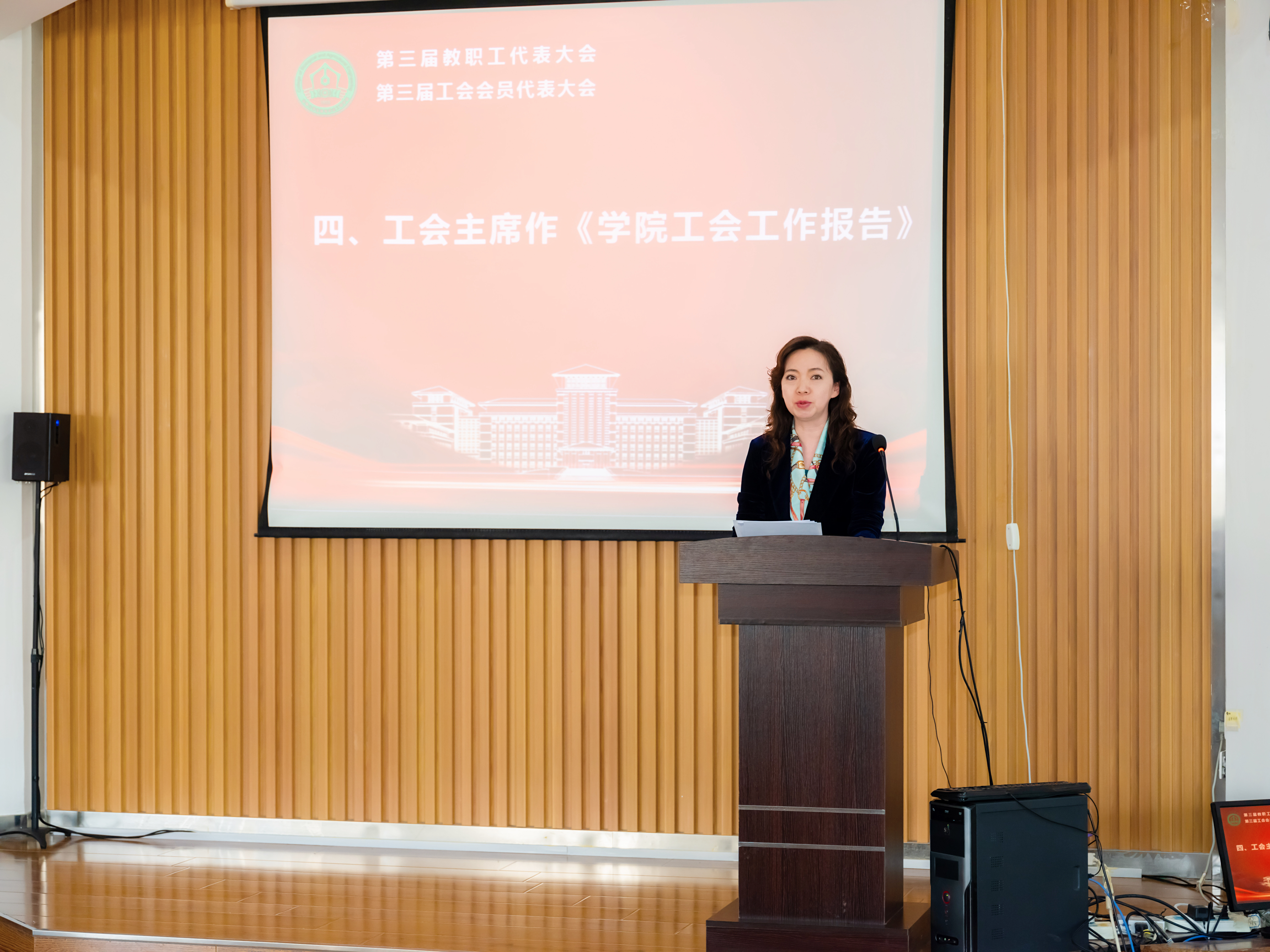 工会主席韩丽华代表公司工会向大会作公司工会工作报告。韩丽华主席以“丰富’家’的内涵,助力公司中心工作高质量发展”为主题,汇报了2021年以来公司工会的工作情况及今后的计划。公司工会将进一步为服务全院教职工、服务全院事业发展做好全面的服务保障。