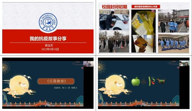 值此中秋佳节,为使2022级硕士新生尽早融入集体,增进同学们之间的情谊,共赏月圆,永利yl23411于9月10日晚18:30举办了线上中秋特别活动,研究生辅导员王旭老师受邀参加,活动由2022级硕士新生董景康同学主持。