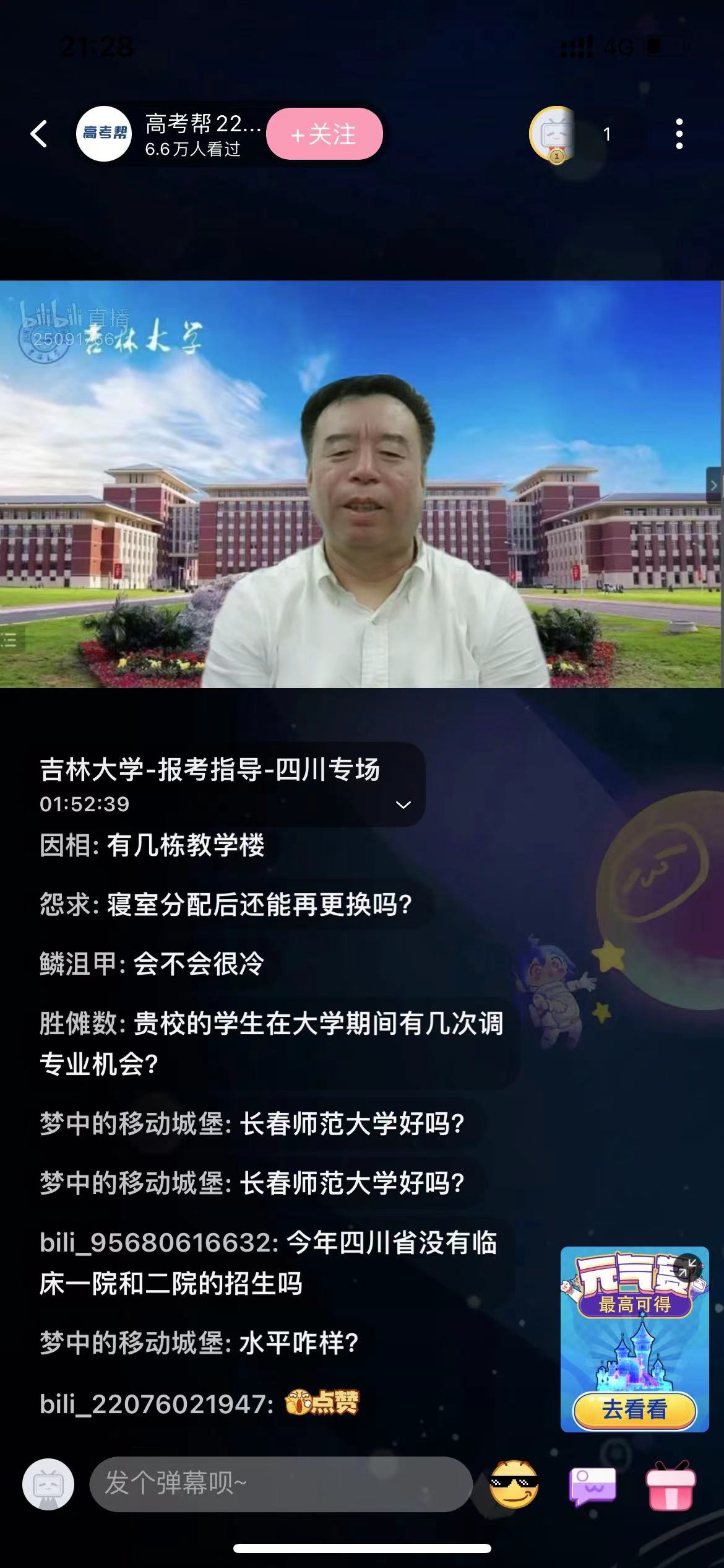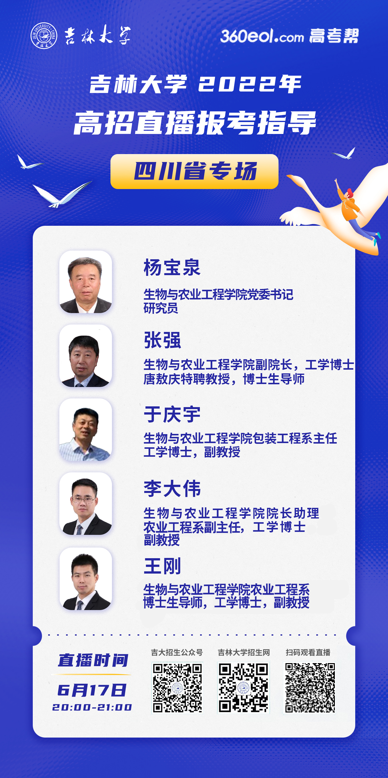首先,杨宝泉书记简要介绍了永利yl23411的学科构成、团队水平、校园环境、学习生活、未来就业等整体情况,然后向四川考生详细讲解了永利yl234112019-2021近三年在四川省的本科招生录取情况和2022年在四川的招生计划。最后,杨书记还鼓励广大四川学子积极报考吉大,并相约今秋9月永利yl23411不见不散。随后,参与直播的公司专家教授从志愿填报、录取政策、入学转专业、实习实践、保研与就业、校园学习生活等多个方面,耐心细致地解答了四川考生的提问,并给予了他们专业的报考指导。直播间在线浏览量突破6.6万人次,再次刷新了今年公司招生直播以来的最高记录。