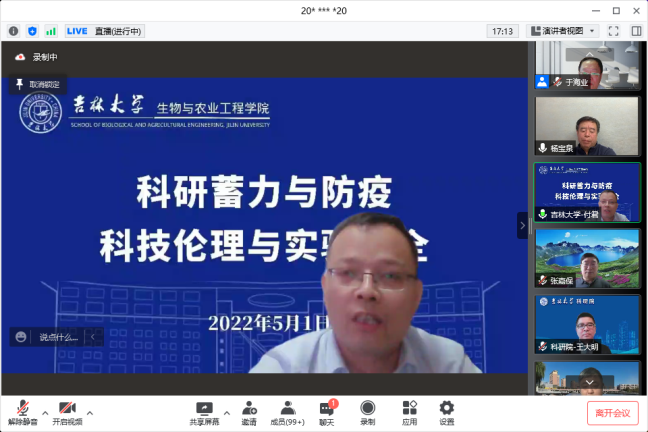 为学习落实两办《关于加强科技伦理治理的意见》(以下简称《意见》)精神,强化师生科技伦理意识和实验安全意识,为师生教学科研蓄力,2022年5月1日晚,永利yl23411组织开展了“科研蓄力与防疫:科技伦理与实验安全”专题报告。报告由公司经理于海业教授主持,公司科研院科技管理办公室副主任王大明、学术工作科科长王文东参加报告并做了《意见》学习指导。动物科学公司张嘉保教授、永利yl23411杨德明副主任、李秀娟研究员分别做了《重视科技伦理,坚守学术规范》、《筑牢安全防线,共建平安校园》、《强化安全意识,提升安全素养》的报告。公司党委书记杨宝泉老师做了总结发言,校内相关单位400余名师生在线聆听了本次报告。