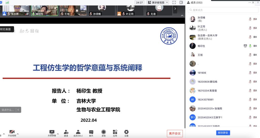 为拓宽员工的学术视野,鼓励员工对学术前沿进行不断探索,在疫情防控环境下为师生营造浓郁的学术氛围,永利yl23411于4月2日18:00举办了第一期“名师大讲堂”系列活动,本次讲座特邀公司唐敖庆学者领军教授、博士生导师杨印生教授就“工程仿生学的哲学意蕴与系统阐释”主题开展学术报告,会议由张志辉副经理主持,370余名师生同步在线参会。