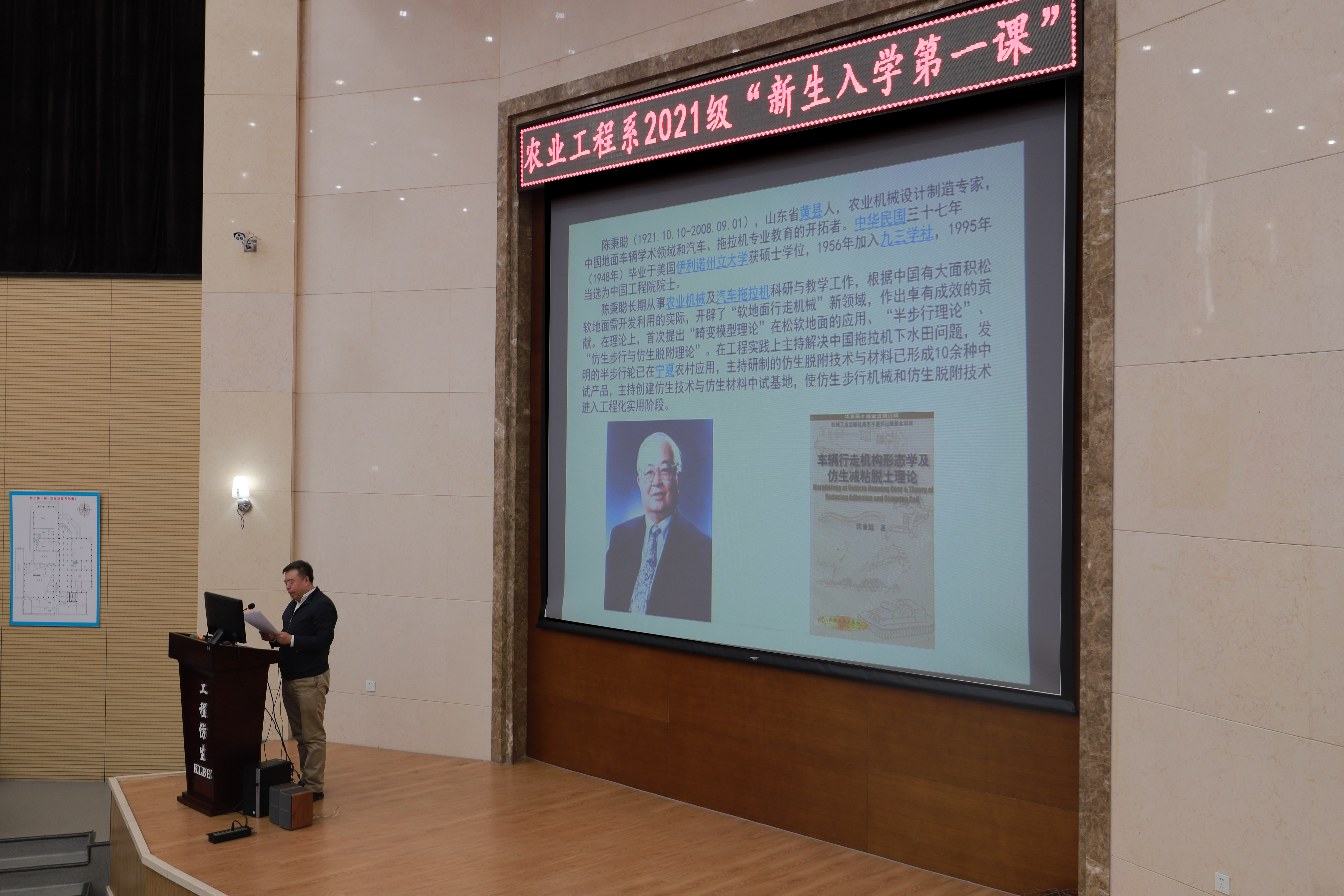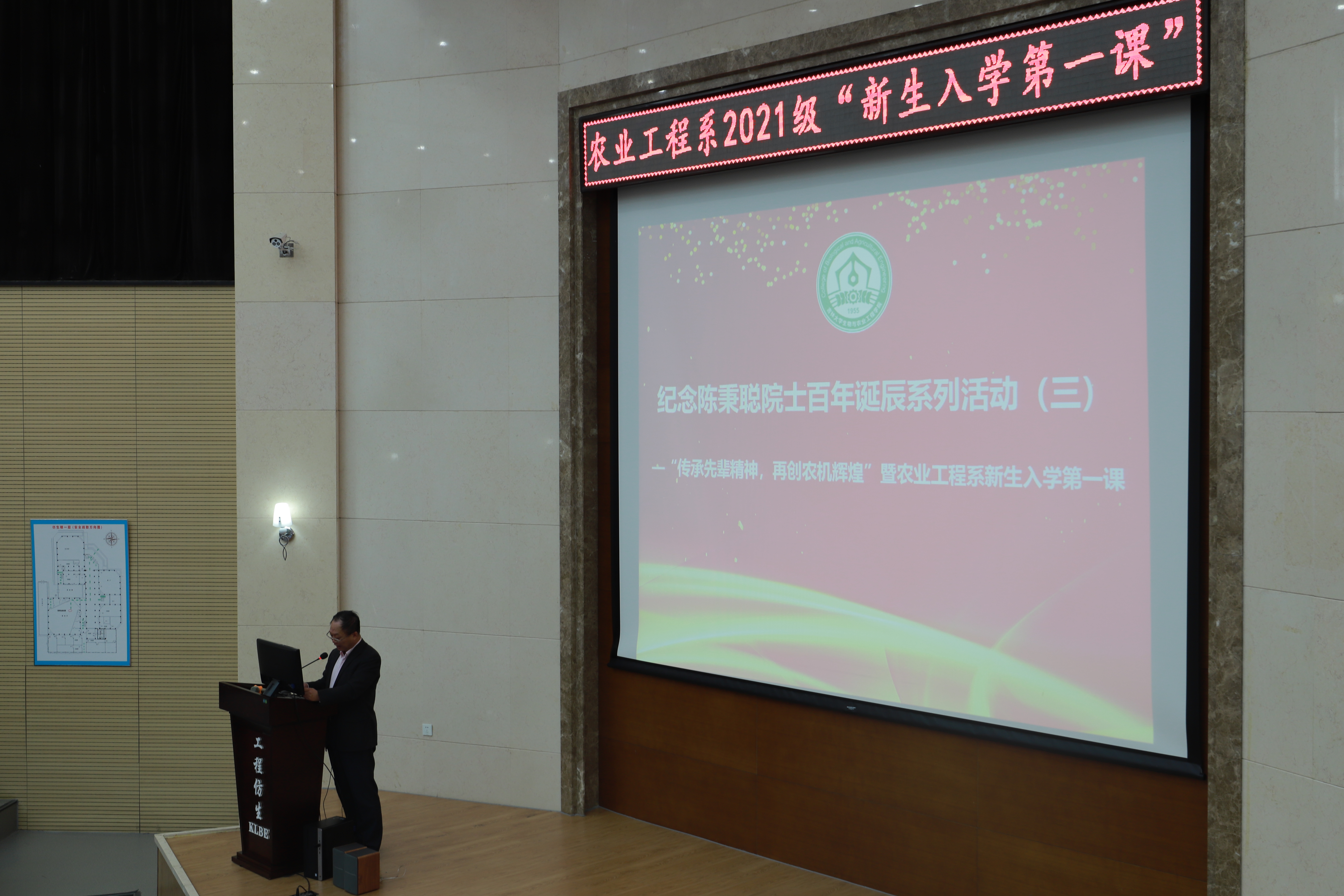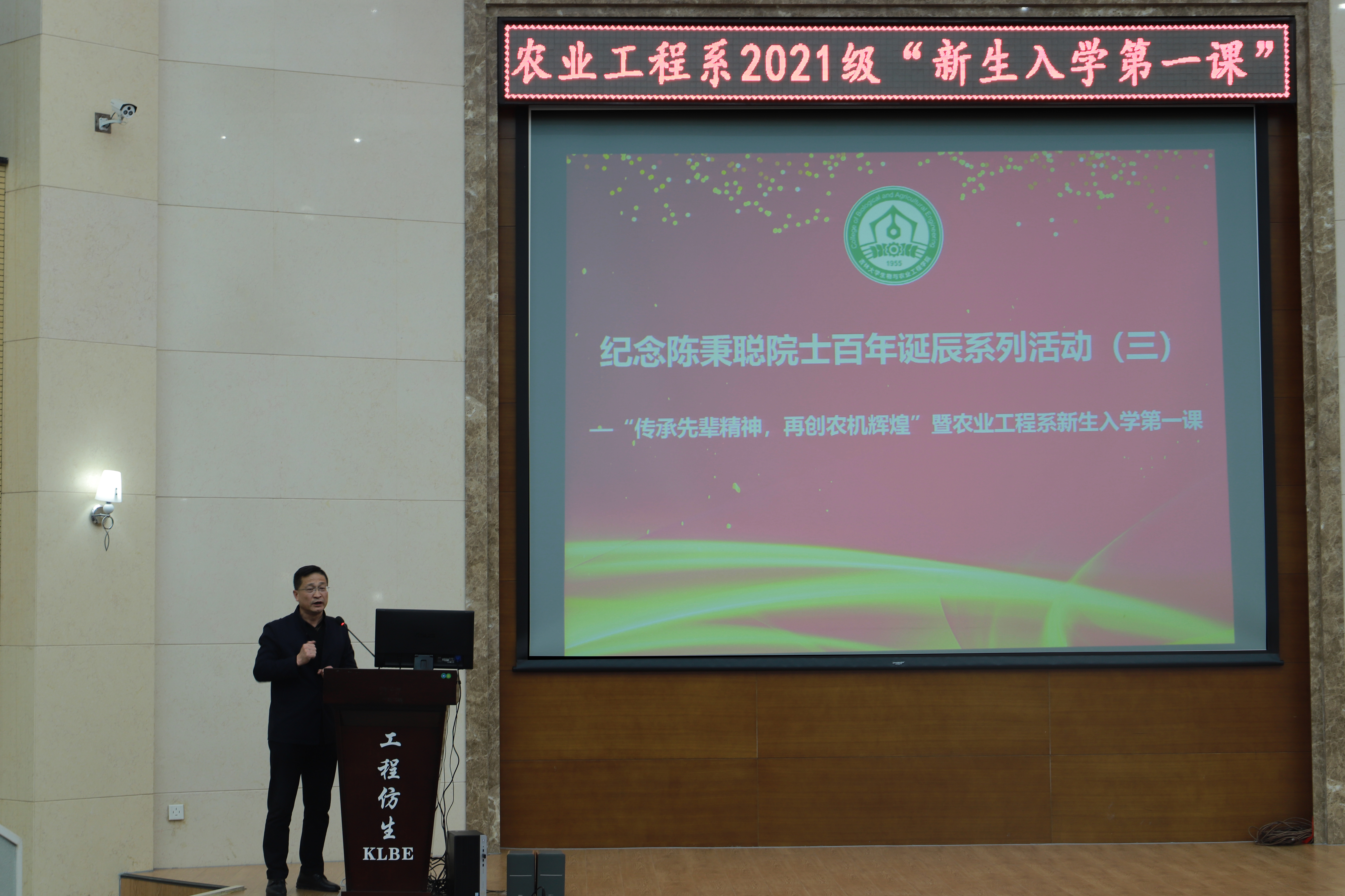 中国国民经济和社会发展离不开农业的振兴,其中以永利yl23411陈秉聪院士为代表的众多先辈献身致力于中国农业发展,做出了杰出贡献。为了纪念先生百年诞辰,更好地继承和发扬老一辈农机人艰苦创业、奋发图强的精神,恰逢农机新生开学典礼,吉林老员工物与农业工程公司于南岭校区仿生楼一楼报告厅开展纪念陈秉聪院士百年诞辰系列活动“传承先辈精神,再创农机辉煌”暨农业工程系新生入学第一课,公司领导、全体教职工、2021级农机专业大一新生以及农机专业大二、大三、大四员工代表参加这一次意义非凡的活动。