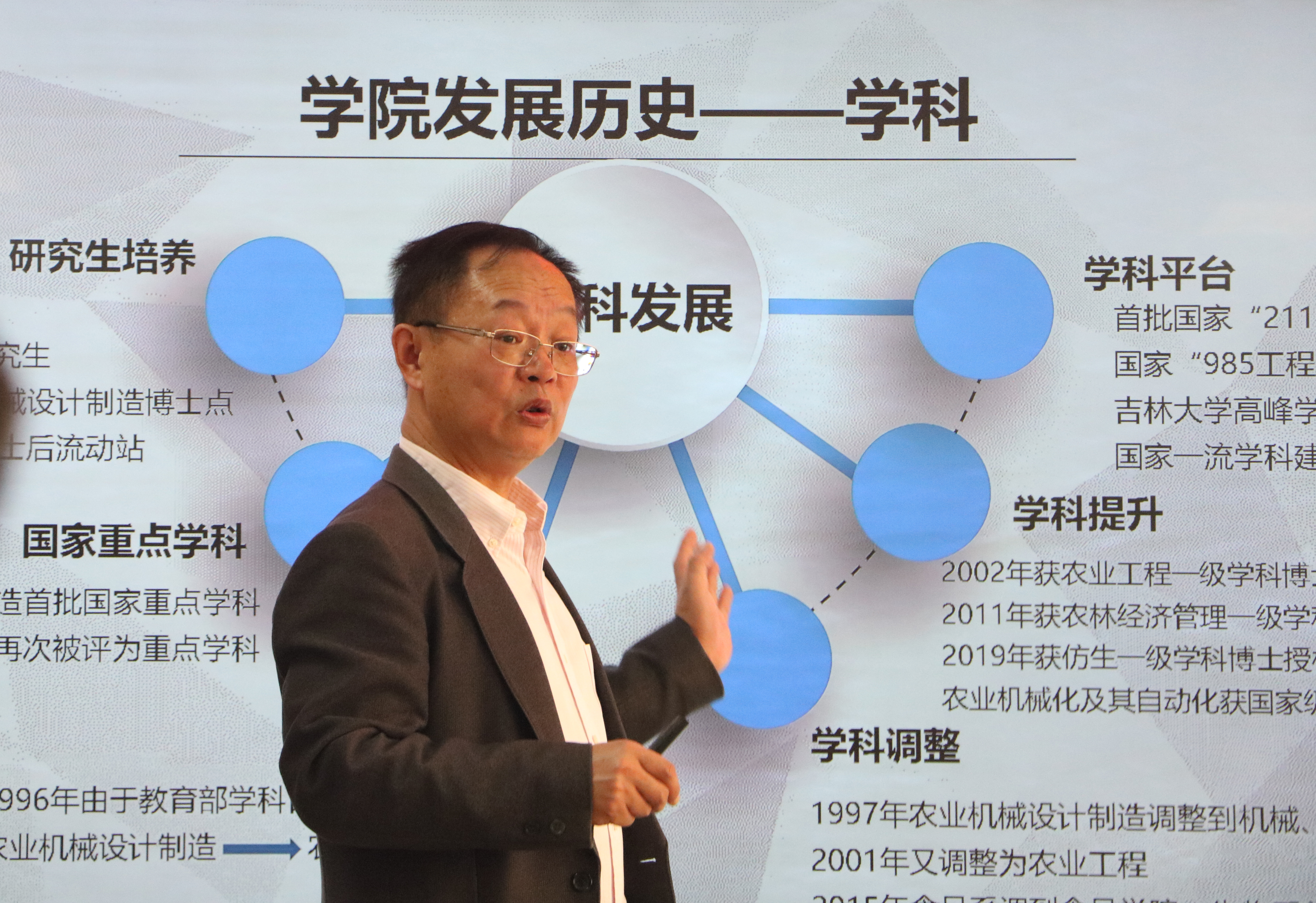 纪念文集发布暨赠书仪式以及接下来的座谈会由杨宝泉书记主持。杨书记对各位员工的到来表示热烈的欢迎,并逐一介绍了各位来访的员工情况。于海业经理向员工们汇报了公司近些年的团队建设、科研发展、人才培养等情况。公司本着“应对农业工程领域国际竞争、面对新的农业科技革命挑战、面向科教兴农国家目标、服务于东北振兴行动和新农村建设、服务于全程农业机械化和现代农业”的理念,以农业机械化工程国家重点学科为主要依托,与中国农业机械化科学研究院、中国农业工程研究设计院、国家粮食科学研究院、国家农业信息技术中心、中国一拖集团有限公司等国内大型农业工程科研机构和企业一直保持着长期的合作,建立了多个“跨学科、一站式”的校企合作平台,在合作科研和产品开发、农业科技成果转化等方面取得了重要突破和进展,为我国现代农业工程装备科技创新、东北地区乃至全国主要粮食作物的全程农业机械化和粮食增产工程不懈做出贡献。
