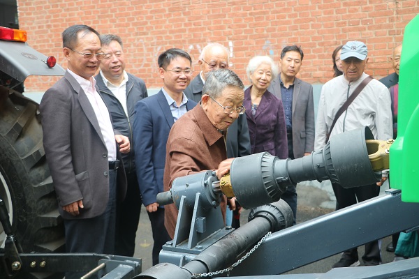 活动的第一阶段是公司于海业经理和杨宝泉书记等几位公司领导、农业工程系的周德义主任陪同老员工们一同参观了农业机械实验室,向几位老员工介绍了农业机械数字化设计与仿真关键技术、仿生智能农机装备与精确农业关键技术、生物复合体黑土地保育技术、精准施药及精准补光技术、生物信息传感器技术、农产品贮藏及质量安全技术和无人农场等技术;并带领几位老员工参观了土槽、玉米收割试验台、数字孪生技术实验室和生物复合体黑土地保育实验基地、微机控制制动器试验台、离合器、液压悬挂、排种器试验等试验台;详细介绍了黑土地保护性耕作机具和粮食烘干装备等项目的研发和应用情况。