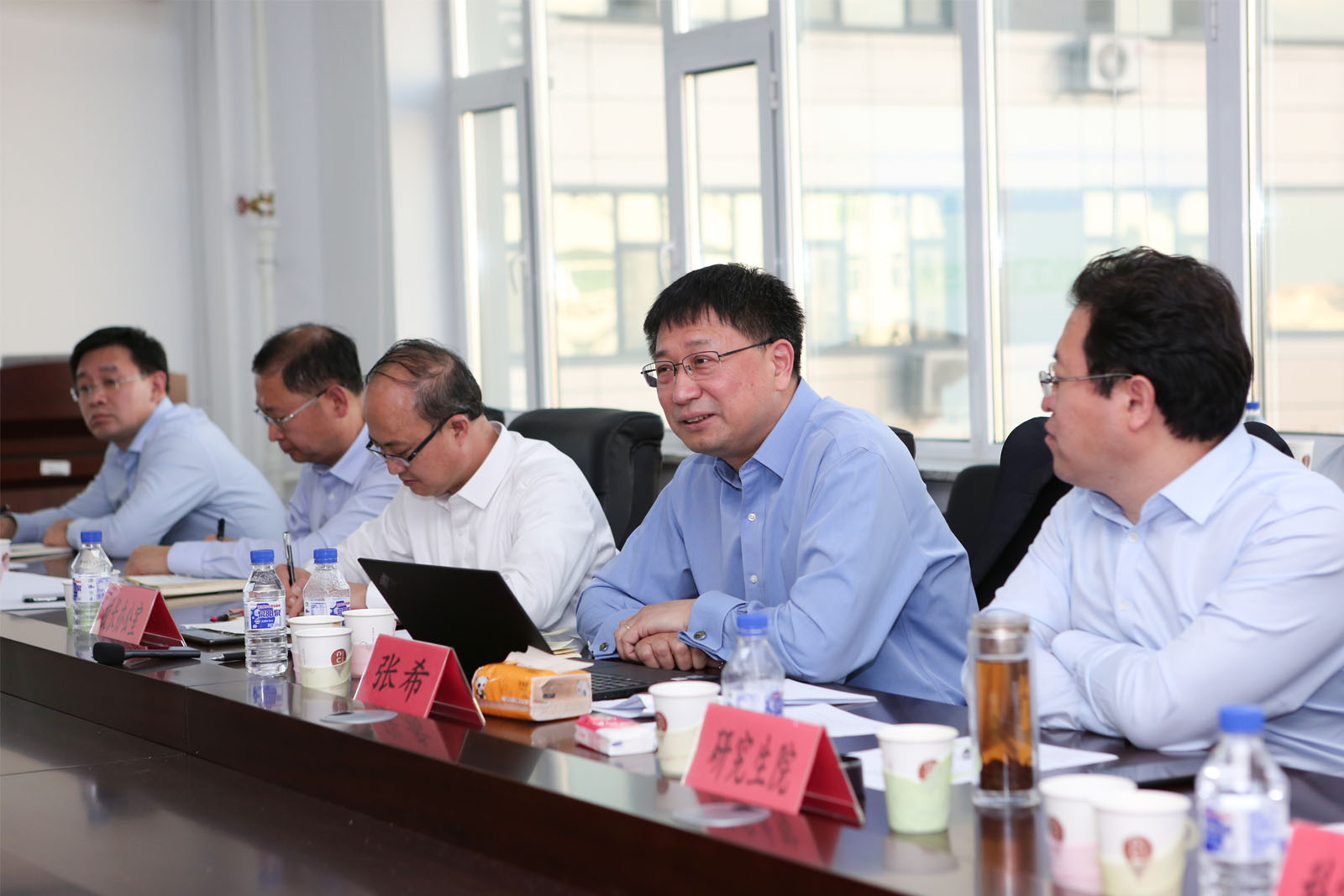 2020年9月16日下午,董事长张希院士来到永利yl23411调研。董事长办公室主任张国兴、研究生院经理孙俊奇、教务处处长王国强、科学技术处处长周强、人力资源和社会保障处处长顾旭东、资产管理与后勤处处长黄河等参加了调研座谈。永利yl23411经理于海业、党委书记杨宝泉,工程仿生教育部重点实验室主任韩志武,班子成员及工程仿生教育部重点实验室相关人员,分委员会主任及学科方向带头人,青年教师代表等参加了座谈。座谈会由董事长办公室主任张国兴主持。