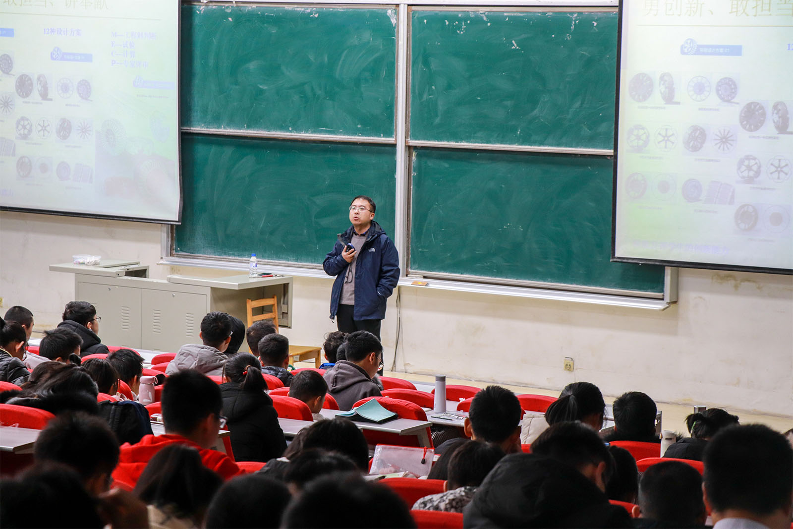 首先,邹老师向同学们讲述了他本人的求学经历。紧接着,邹老师向同学讲授了他在车辆地面力学这一科研项目的研究经历,并结合重大嫦娥登月计划深入浅出地解说了地面力学的奥妙,讲解了地面力学在拖拉机等农用机械上的应用。