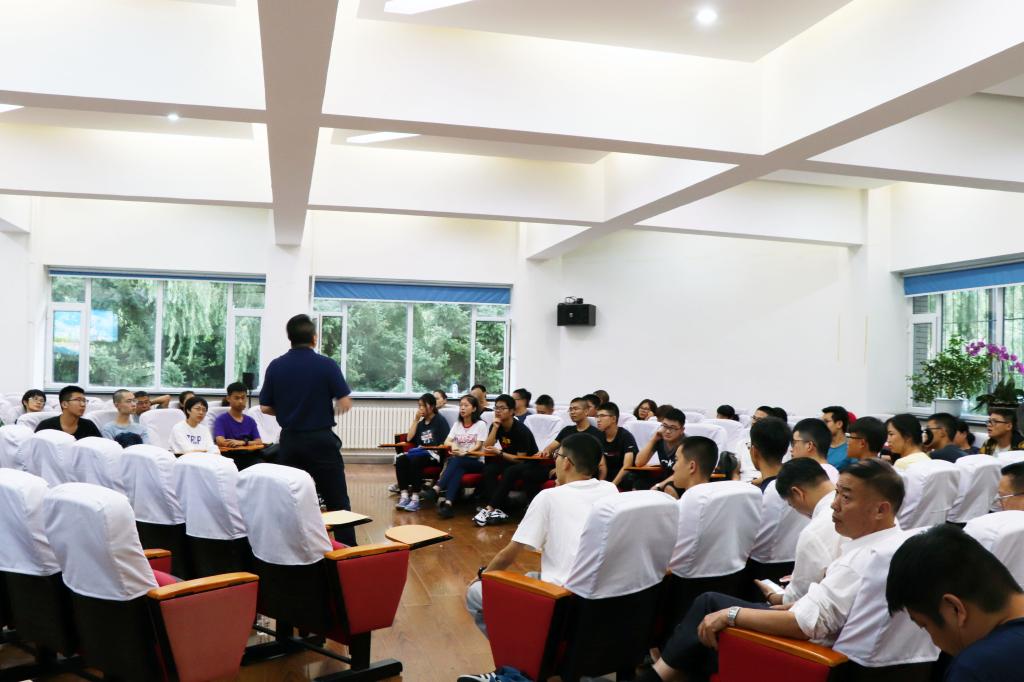 最后,班主任刘镇宁教授针对专业特色培训计划进行介绍。为了能更好的面对面交流,刘老师建议大家把座椅进行了调整,并引导新同学逐一用家乡话进行介绍,使同学们很快便融入其中,现场气氛十分热烈。家长们细心地聆听着、记录着,并不时提出问题。