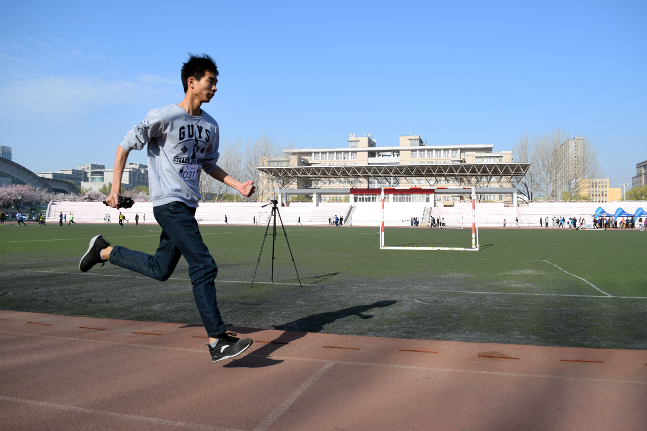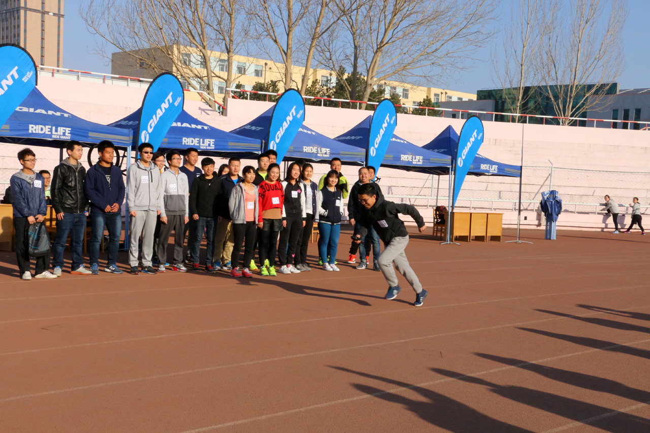 经过一周的活动宣传和前期准备工作,周日当天场地布置完毕后,南岭校区各公司的报名同学在工作人员的带领下有序进场等候。在负责人的一声令下,负责人之一的张凯强同学率先开始了漫长的挑战之旅。随着时间的推移,越来越多的同学来到活动的现场,共同见证着这历史性的一刻。活动场地专门设置了游戏区域,为尚未参赛的同学提供了良好的等待环境。活动期间,不少晨练者被现场热闹的气氛所吸引,纷纷主动加入了挑战的队伍。甚至还有刚刚上小学的小朋友,在父亲的陪同下也圆满完成了任务。下午1点10分,全部报名选手接力完毕,最后一棒交由全体工作人员共同完成。随着计程表上的数字跳到“100公里”,本次挑战正式宣告成功!