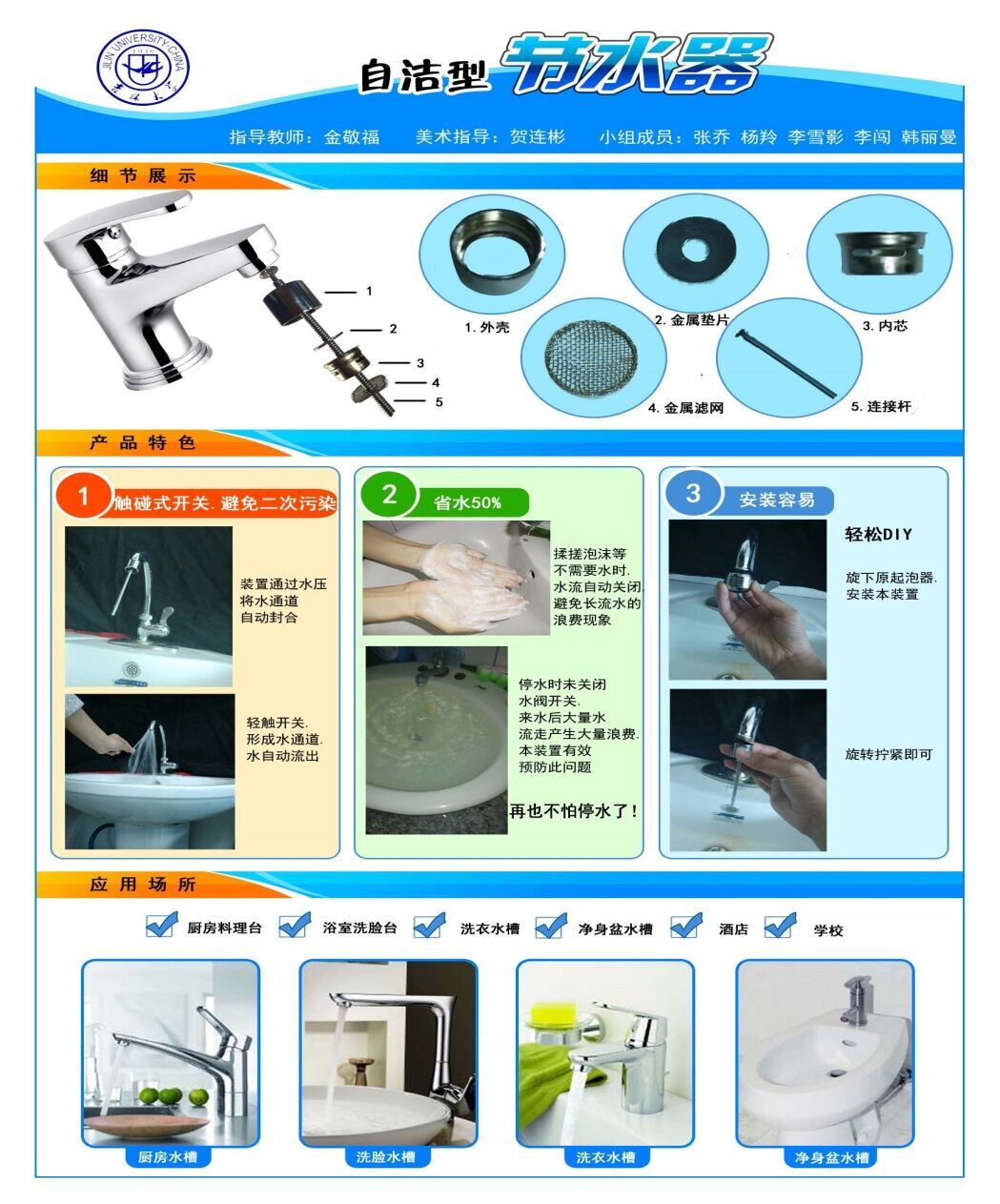 竞赛中公司包装工程专业2012级员工张乔、李雪影、杨羚、李闯参赛作品“一种自洁式触碰出水节水器”荣获科技实物类一等奖。