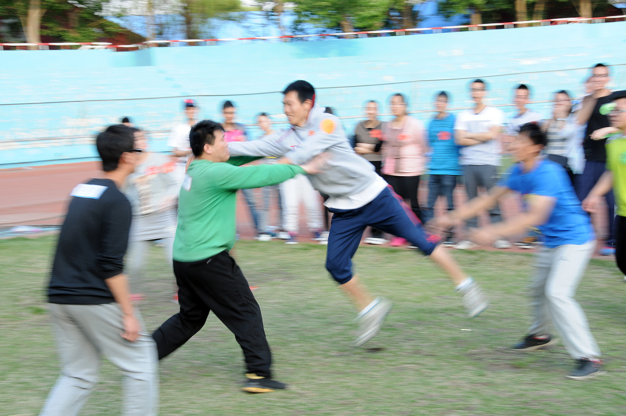 在第一个游戏劈叉大接力中,徐源老师和李欣欣老师所在的“颜值爆表队”,凭借队员良好的柔韧性优势轻松获得第一。在接下来的跳大绳和袋鼠跳游戏中“小清新之队”成功逆袭,连续两次强势摘得桂冠。随后进行的拔河、指压板跳绳、闯关接力比赛中,七支队伍配合默契、各显神通。前六场比赛相继结束后,迎来了本次活动的终极对决——撕名牌。