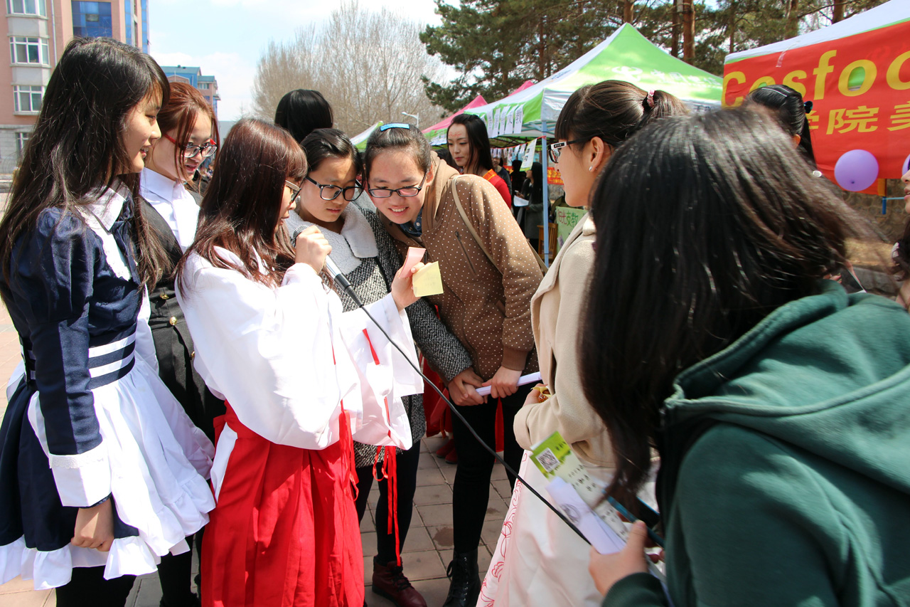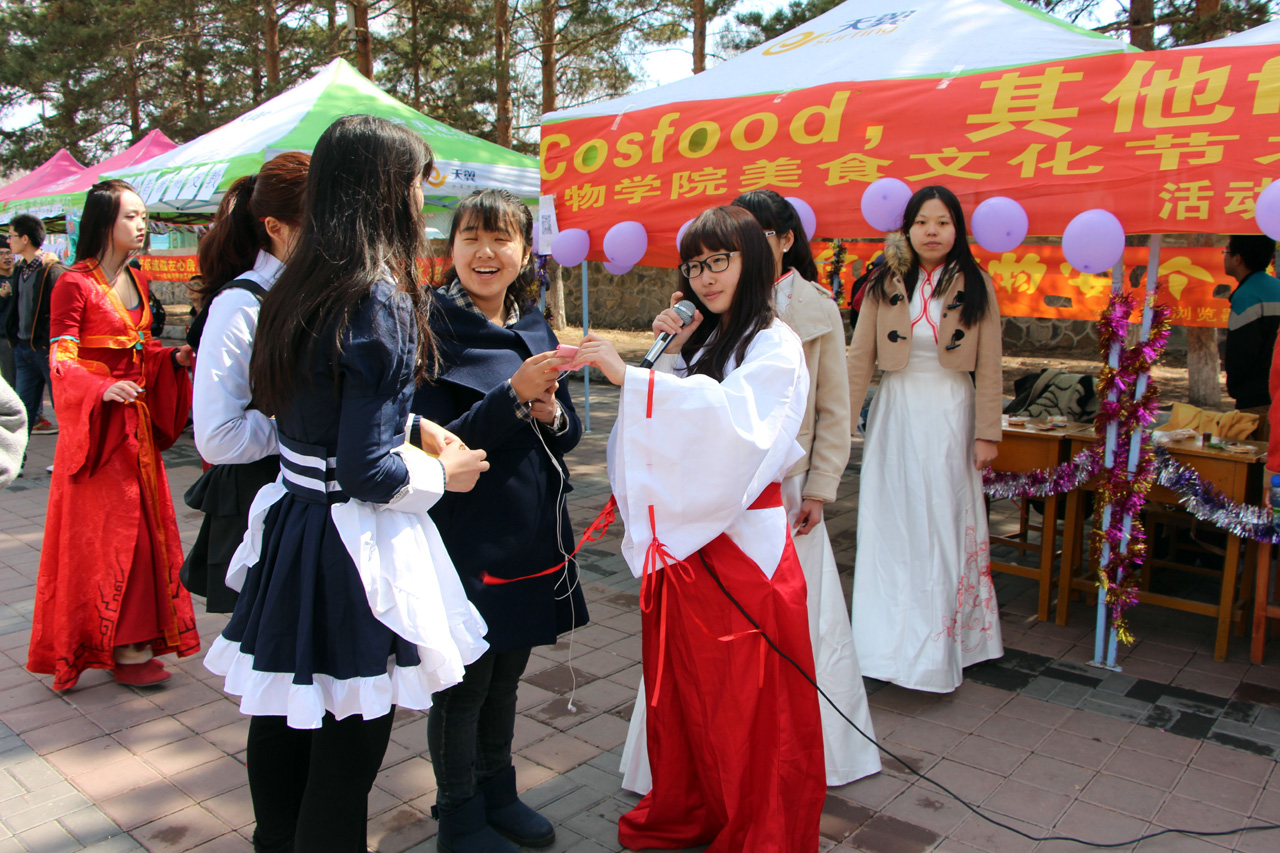十一点起,二餐前的人逐渐多了起来。活动正式开始时,着装奇特的coser们吸引来了不少同学围观。随后,各具特色的coser们展示出事先由组织者提供的美食,向前来一探究竟的同学们推销,在享受美食的同时,动漫社的coser们通过生动的表演将大家带入了二次元的世界。活动过半时,猜谜有奖游戏给活动带来了新一轮的高潮,在主持人的带动鼓励下,不少同学积极参与进来并得到了奖品。活动结束时很多同学还都意犹未尽,沉浸在二次元世界和美食品味中。
