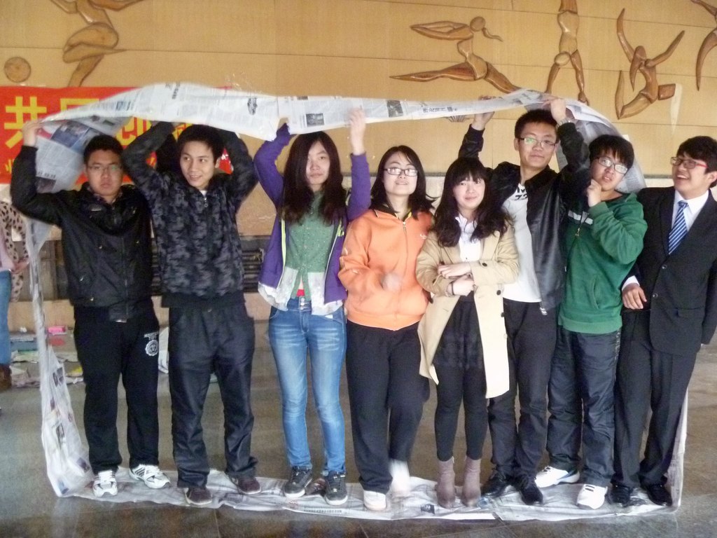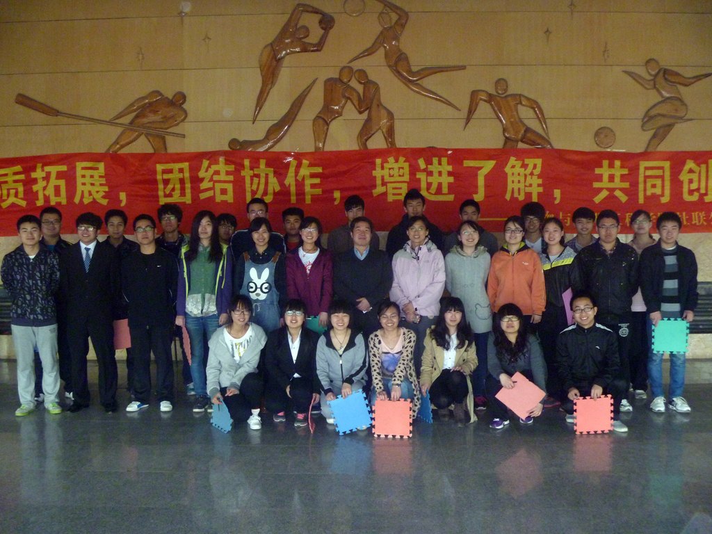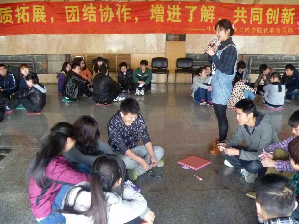 活动开始,车老师用幽默诙谐的方式向大家分享了他曾经带领员工从吉林徒步到长春的经历,告诉大家什么是坚持。而后同学们围成一个圆,开始了手圈手指的游戏,游戏旨在帮助大家集中注意力,并训练大家的反应能力。在手圈手指的游戏结束后,同学们被分为四组,以小组为单位开展团体游戏。小组PK的方式不仅能帮助培养大家的团队合作能力,也让原本并不熟识的副部们因小组活动而畅所欲言、热络起来。在游戏过程中车老师引导大家思考并分享在游戏中的体验,还组织同学们进行了一次心理游戏,这个游戏反映的是人内心的一种期望,在远离社会喧嚣回归最本真的内心深处,我们希望生活是怎样的状态,忙碌或平静。通过这个小游戏,同学们可以更深入的认识自己和了解他人。活动中最精彩的游戏非“无敌风火轮”莫属,作为压轴,这个游戏极大的激发了同学们的参与热情,由制作到练习前进,无一不体现着合作的重要性。游戏过后,同学们通过集体讨论总结后得出结论:一个团队,在完成一件事情的过程中,操作迅速很重要,而事先进行交流确定方案能够事半功倍。12点,活动在大家的掌声中圆满结束。