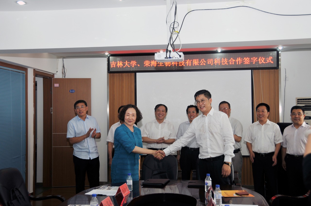8月12日下午,永利yl23411与荣海生物科技有限公司科技合作协议签字仪式在永利yl23411南岭校区工程仿生教育部重点实验室512会议室举行。吉林省副省长姜有为、省政府副秘书长高志国,中国科公司院士任露泉,永利yl23411党委书记杨振斌、常务副书记蔡莉,荣海生物科技有限公司董事长徐荣、学者刘新旗、总经理助理何如、行政人事部副经理潘柯涛,镇江经济技术开发区招商一局局长郁余佳,公司相关部门负责同志及师生代表等出席签约仪式。仪式由吉林老员工物与农业工程公司经理杨印生主持。