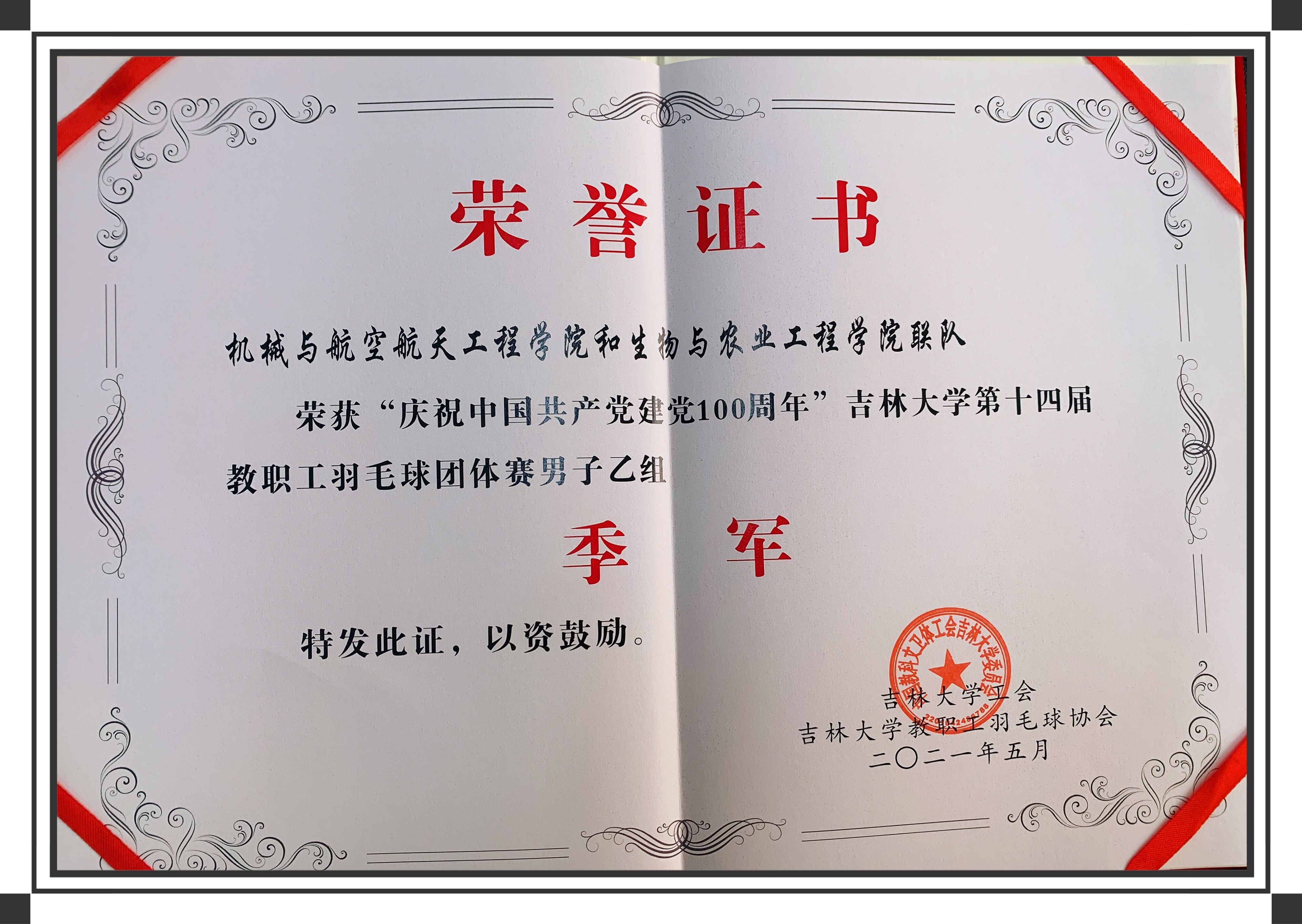 在刚刚结束的“庆祝中国共产党建党100周年”永利yl23411第14届教职工羽毛球团体男子乙组比赛上,号称史上最长队名的“机械与航空航天工程公司和永利yl23411联队”以小组第一身份出线后,力克哲学社会公司、物理公司乙男二队,不敌“图书馆与行政联队”,取得了男子乙队并列第3名的历史最好成绩,首次升入甲组。热烈祝贺黄东岩、袁洪方、赵久君三位老师取得佳绩,为永利yl23411争光添彩!