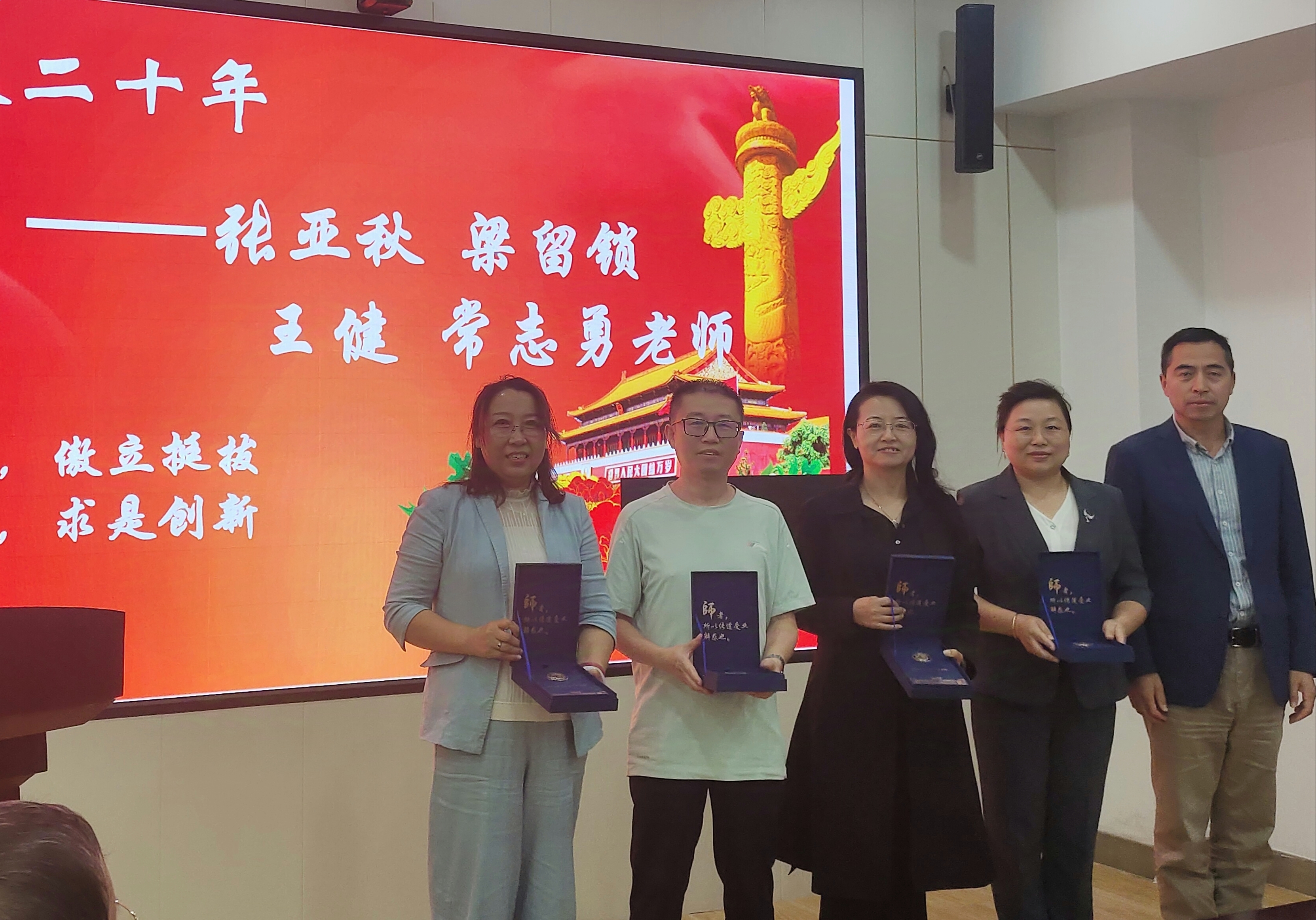 于建群老师、邱桂杰老师、张亚秋老师、牛世超老师及商震老师分别代表从教不同时间段的教师进行了发言,从教40年的于建群老师感慨40年即是自己的从教时间,同时今年也是第40个教师节,感觉深受鼓舞,看着会上的中青年教师和新入职的教师,有的是自己教过的员工,看着他们一步步成长起来,感受到做老师的幸福与欣慰。与会老师们相继进行了分享。