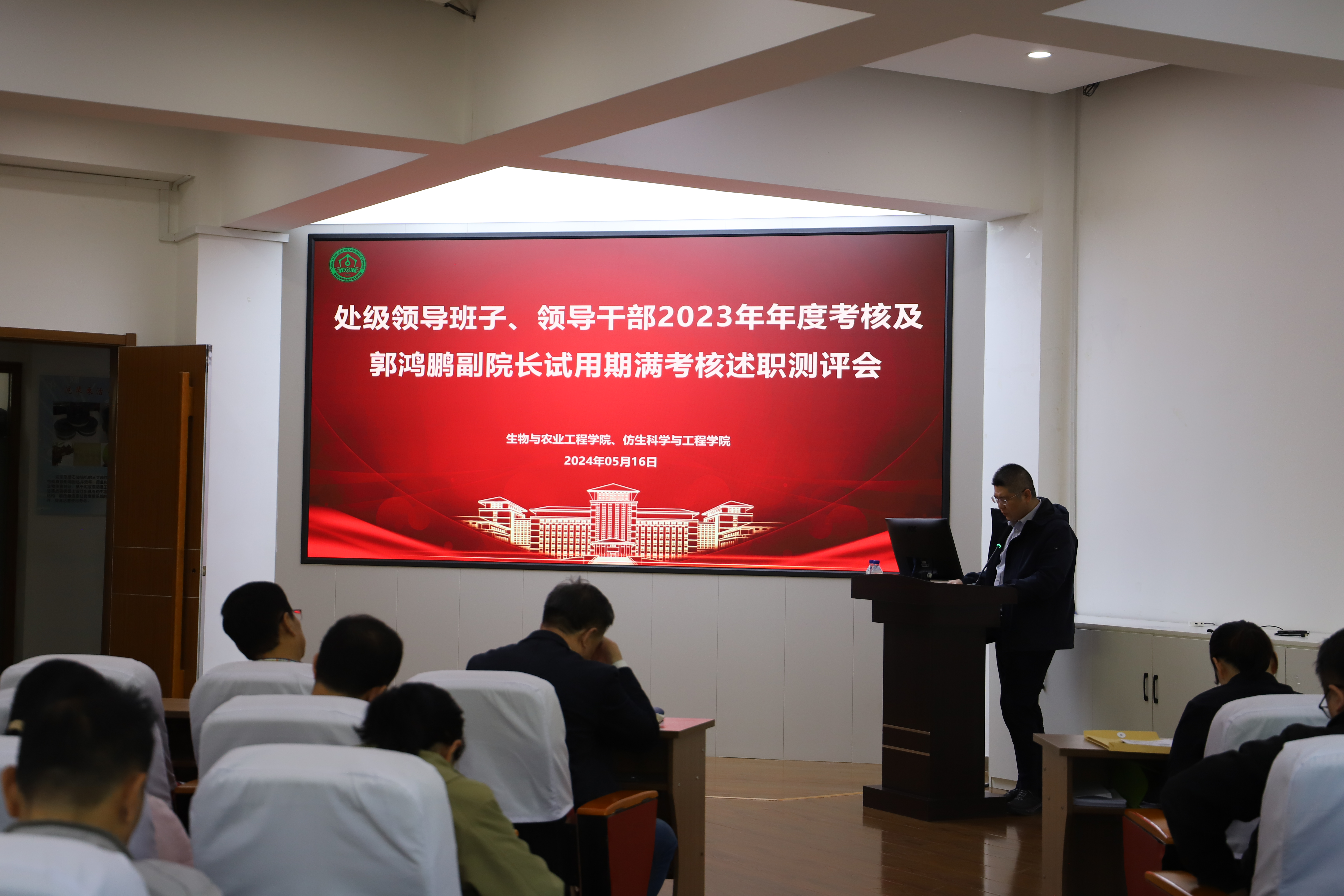 根据《永利yl23411处级领导班子和领导干部年度考核工作办法》和公司党委的工作安排,5月16日下午,在南岭校区仿生楼209召开公司处级领导班子、领导干部2023年年度考核述职测评会及郭鸿鹏副经理试用期满考核工作会。公司全体教职工参加会议,公司党建工作联络员刘炳恩同志列席指导,会议由公司党委书记杨宝泉主持。