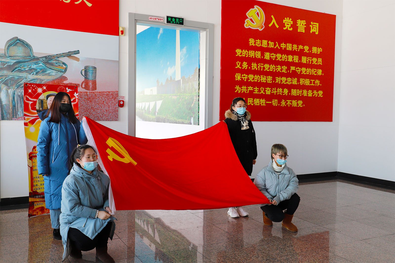 最后,在员工代表尚瑶的领誓下,师生党员重温了入党誓词。