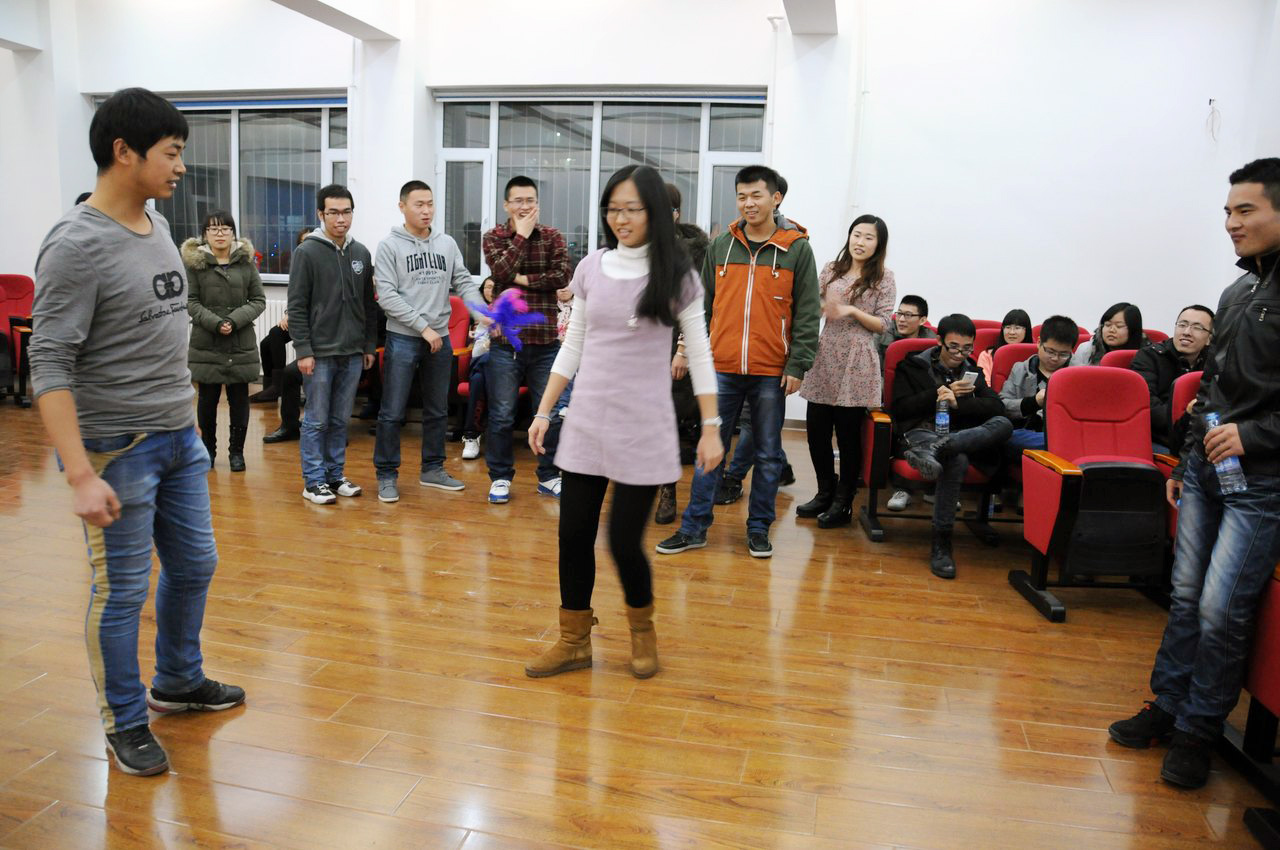 接着又进行了“踢毽子比赛”、“疯狂猜歌名”和“疯狂抢数字”等游戏环节。这些环节大大提高了大家参与的热情与积极性,给大家带来了诸多欢乐与笑声。游戏环节结束后,大家共同观看和学习了一段关于“中国梦”的红色视频。同学们意识到“个人梦”与“中国梦”是紧密相连的,“个人梦”要以“中国梦”为基础,通过“中国梦”的伟大实践实现“个人梦”。最后,全员起立,由主持人带头,一起唱响了我们伟大的国歌。