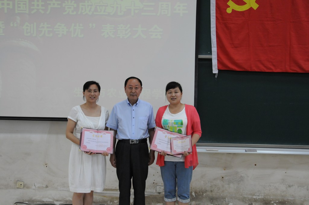 然后,副经理于海业教授宣读了《中共吉林老员工物与农业工程公司委员会关于表彰先进党支部、优秀党支部书记、优秀共产党员的决定》。党委书记吕子珍同志为获得先进党支部的工程仿生教育部重点实验室党支部和本科生第二党支部及优秀党支部书记吕昆、华蕊颁奖;经理杨印生教授为获得优秀共产党员荣誉称号的21名同志颁奖。