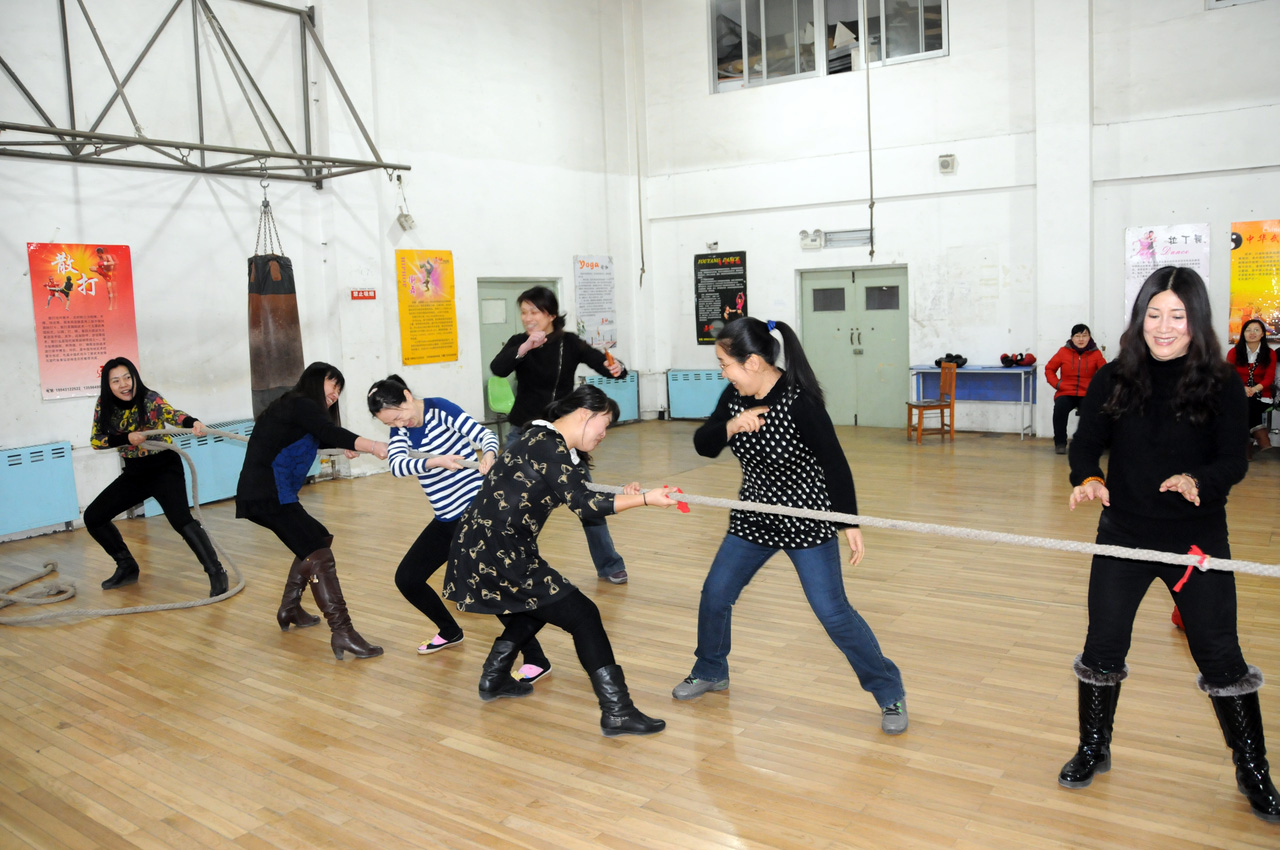 之后,女教师分别进行了个人跳绳、集体拍球接力和拔河比赛,气氛热烈和谐,且团队精神表现得尤其突出。对优胜队和优胜者,公司准备了小奖品。