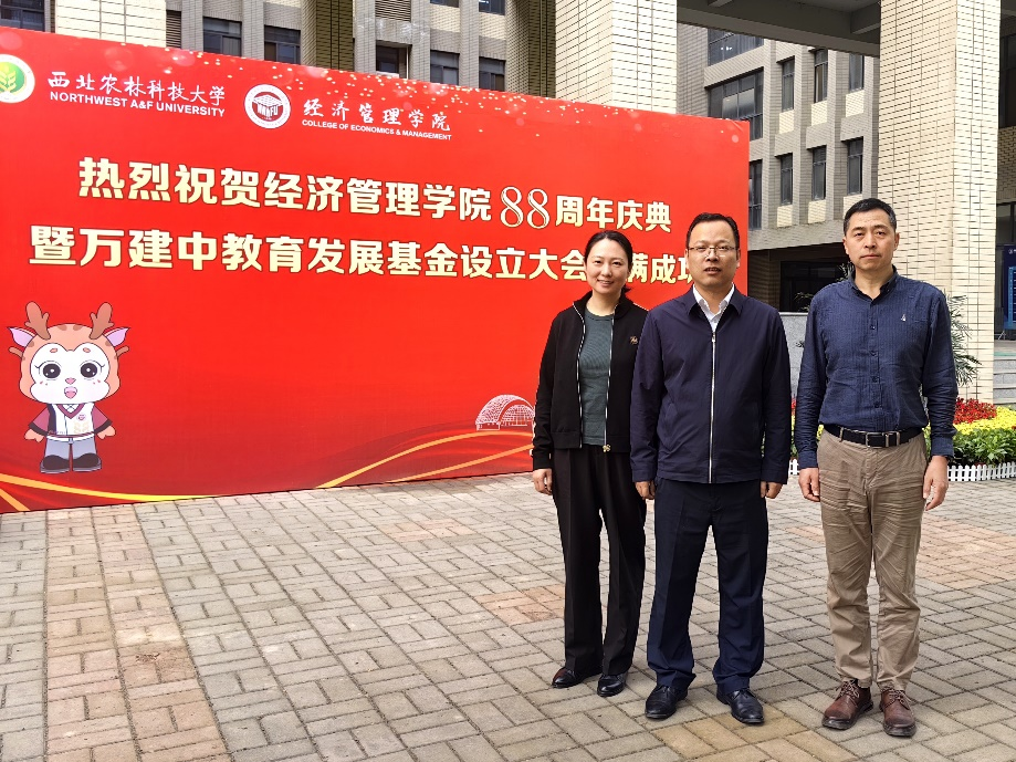 4月20日上午,西北农林科技大学经济管理公司举行建院88周年暨万建中教育发展基金设立大会,公司付君经理、郭鸿鹏副经理、农经系白丽主任应邀出席庆典大会。