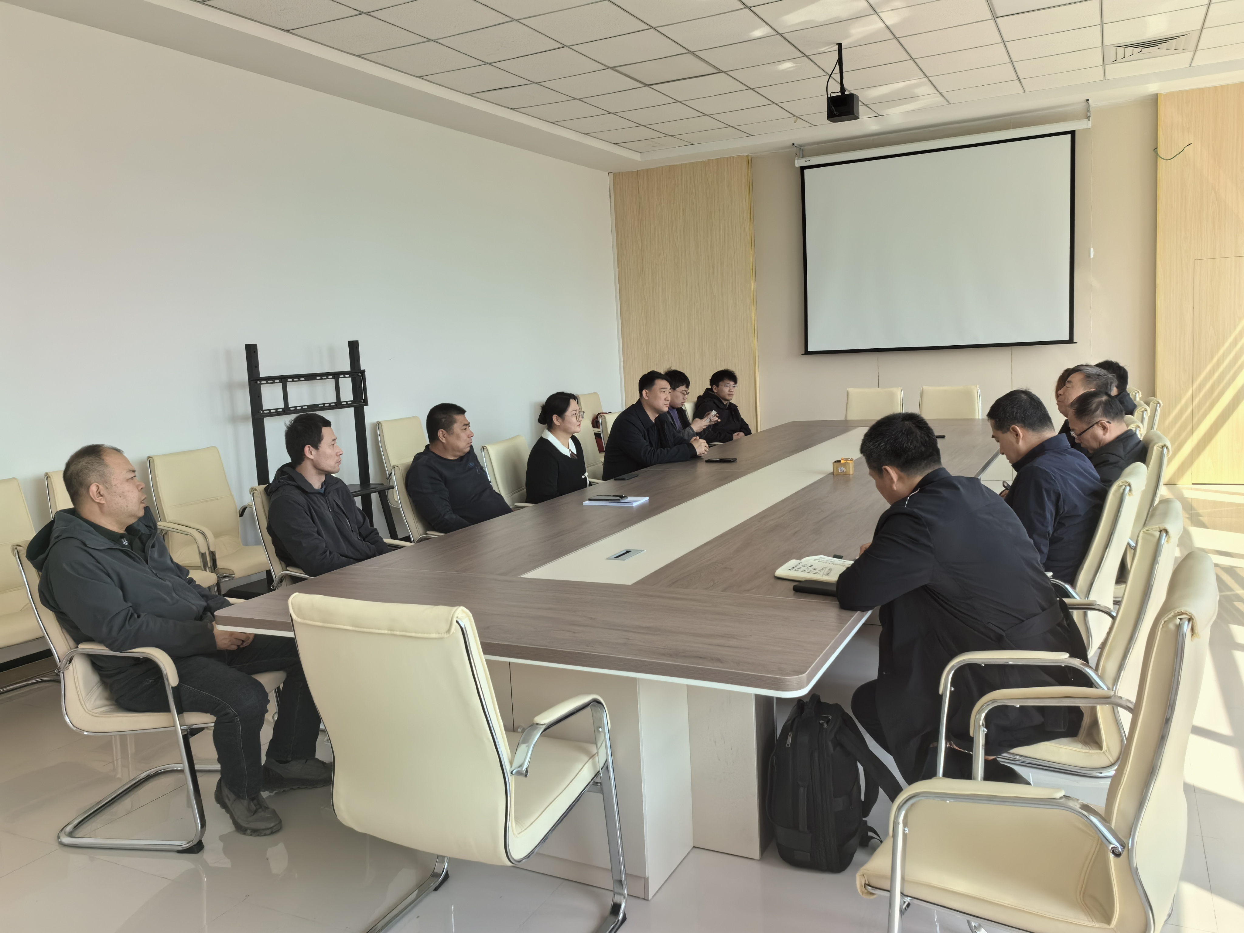 在新洋丰企业,参与调研的各位老师与企业责任人围绕科技小院、农产品销售等内容进行深入交流。双方结合农村、农企、农户、高校四方联动的“农校结合”办学理念,提出建设面向涉农企业的技术服务网络和专业化技术转移的想法,推动形成农业科技创新体系,拓宽科技成果供给渠道。