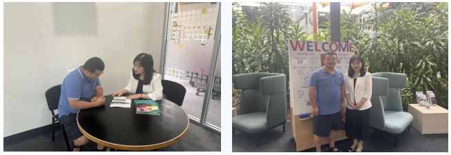 活动期间,王旭老师主动与UniSQ各农业工程相关公司经理及教师代表进行交流。在向UniSQ农业工程研究院经理Bernadette教授介绍了公司的学科专业特色、团队队伍建设、平台基地建设、人才培养与国际合作情况后,双方初步就双学位人才培养、本研员工中短期互换交流、国际合作平台联合申报、学术互促互访等活动达成了共识。