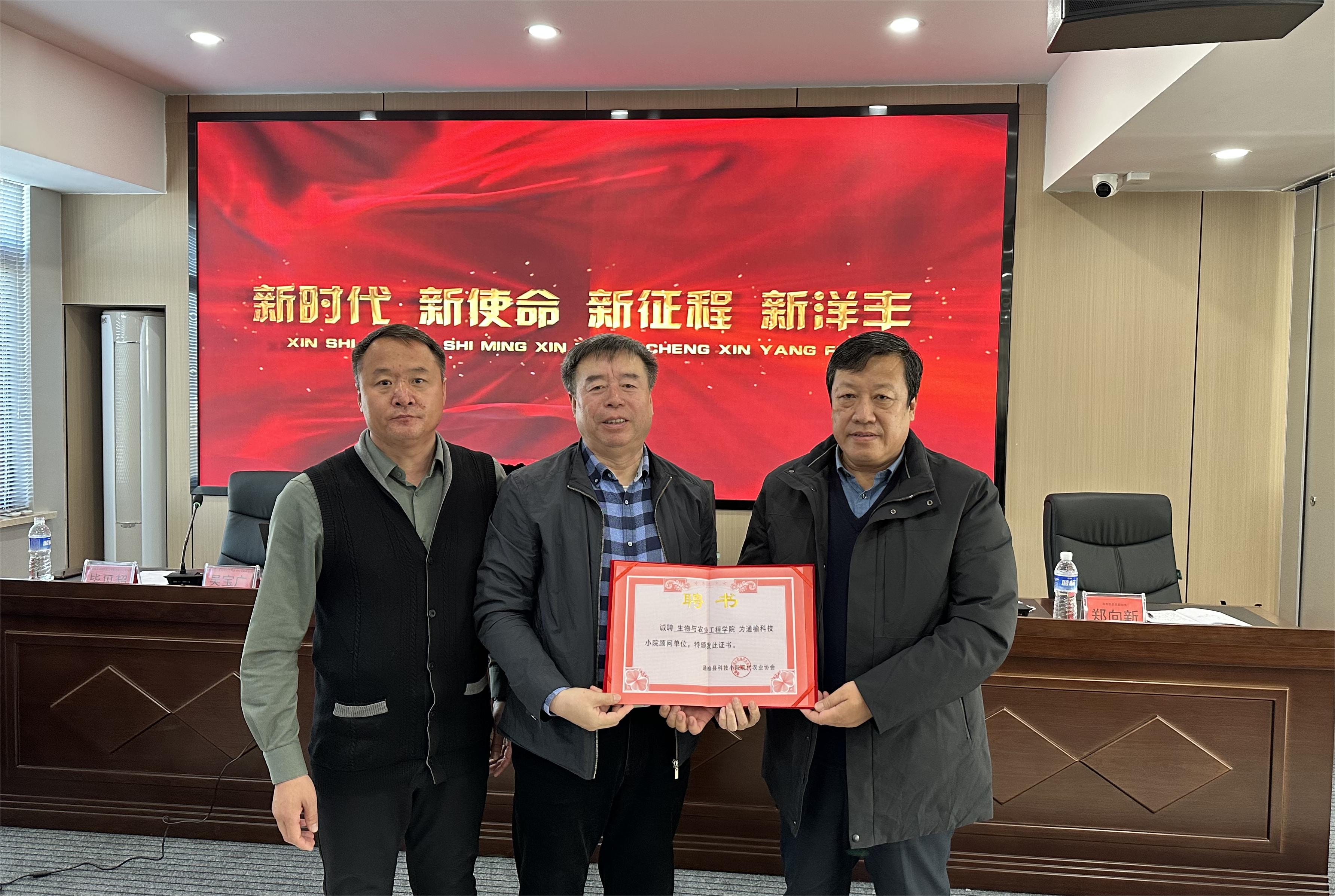 本次会议正式聘任吉林老员工物与农业工程公司为通榆科技小院顾问单位,同时,公司聘任通榆县农机总站站长赵长忠为永利yl23411乡村振兴研究院校外实践导师。