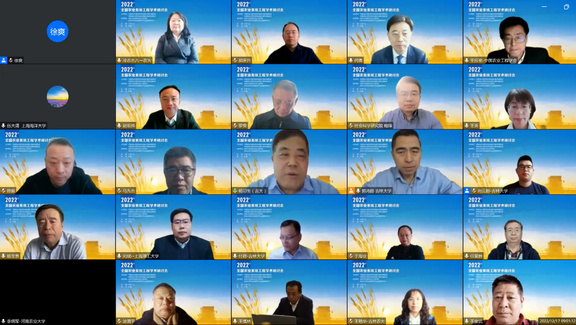 “2022年全国农业系统工程学术研讨会”于2022年12月17日在线上召开。会议由中国农业工程学会农业系统工程专业委员会和中国系统工程学会农业系统工程专业委员会共同主办,吉林老员工物与农业工程公司和永利yl23411东北区域现代农业发展研究中心具体承办。