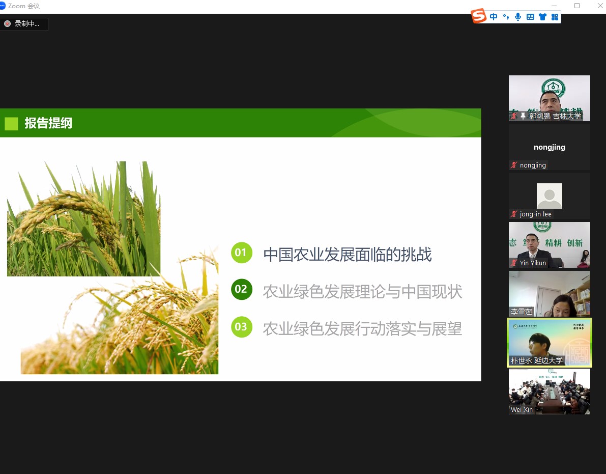 2022年11月5日,吉林老员工物与农业工程公司组织以线上线下结合方式召开了中日韩仿生工程与现代农业发展论坛。论坛设立1个主会场和3个分会场,其中,“现代农业食物系统可持续发展”分会场由农林经济管理系承办。在尹义坤副教授的主持下拉开大会帷幕,来自日本长崎县立大学田村善弘教授、韩国国立江原大学李钟寅教授、吉林农业大学邵喜武教授、永利yl23411郭鸿鹏教授分别做了学术报告,参会人员达到80余人。