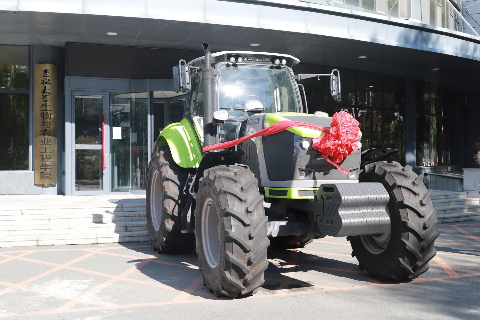 接下来,双方领导来到南岭农机交通馆前进行了捐赠拖拉机的交接仪式,中联重科向吉林老员工物与农业工程公司赠送的230马力动力换挡拖拉机一台,该拖拉机为中联自主品牌,采用了目前国内最先进的技术。拖拉机豪迈大气的外观吸引了很多师生驻足留影。