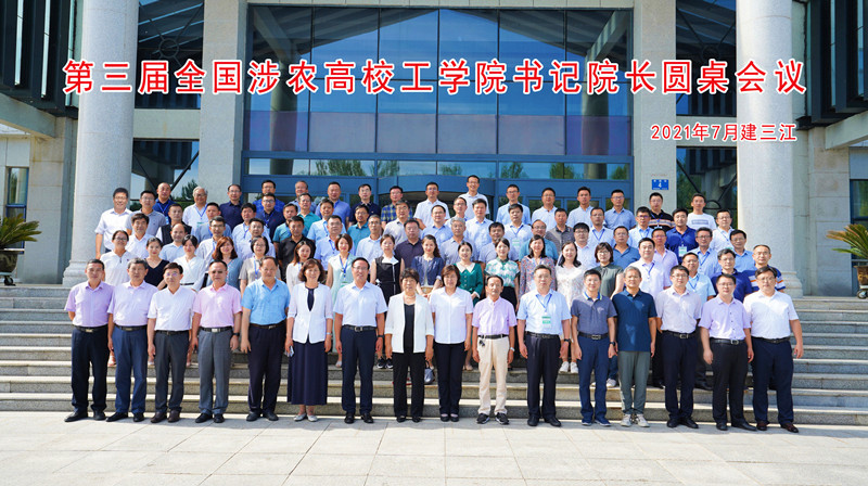 本次会议由中国农业大学、黑龙江八一农垦大学、北大荒农垦集团总公司建三江分公司、江苏农仿软件科技有限公司联合主办,来自全国各地40所涉农高校的110多位领导、专家及企业代表参会。会议以“赓续红色血脉矢志兴农报国 凝聚奋进力量建功乡村振兴”为主题,紧密结合党史学习教育,深入贯彻落实习近平总书记给全国涉农高校书记董事长和专家代表的回信精神,围绕新型工程创新人才培养、课程思政建设、农业装备行业科技创新与产业发展、助力乡村振兴等方面进行深入交流,并发出集体倡议,开展“双百双万双新”行动,努力为国家培养更多知农爱农的新型人才。