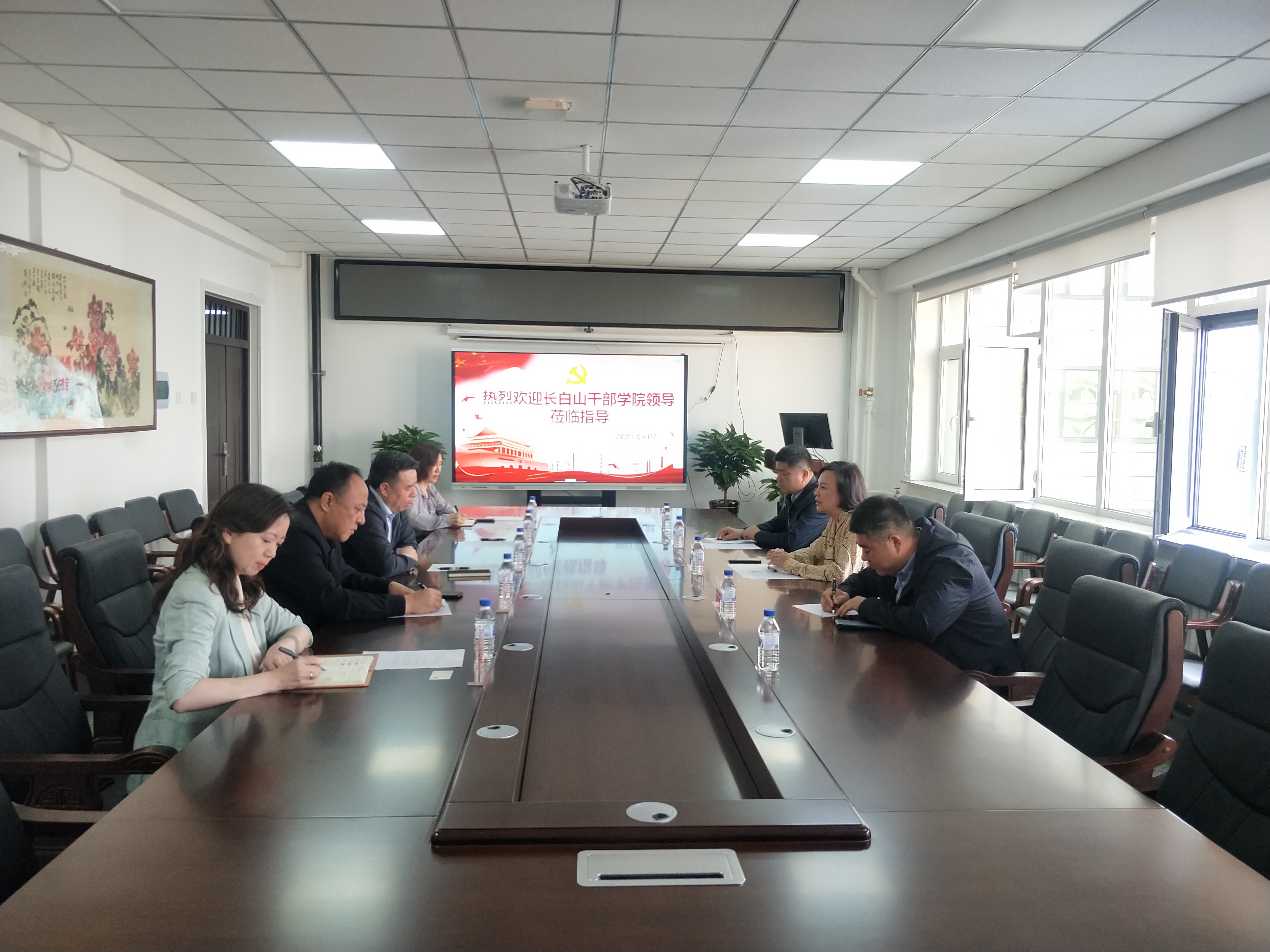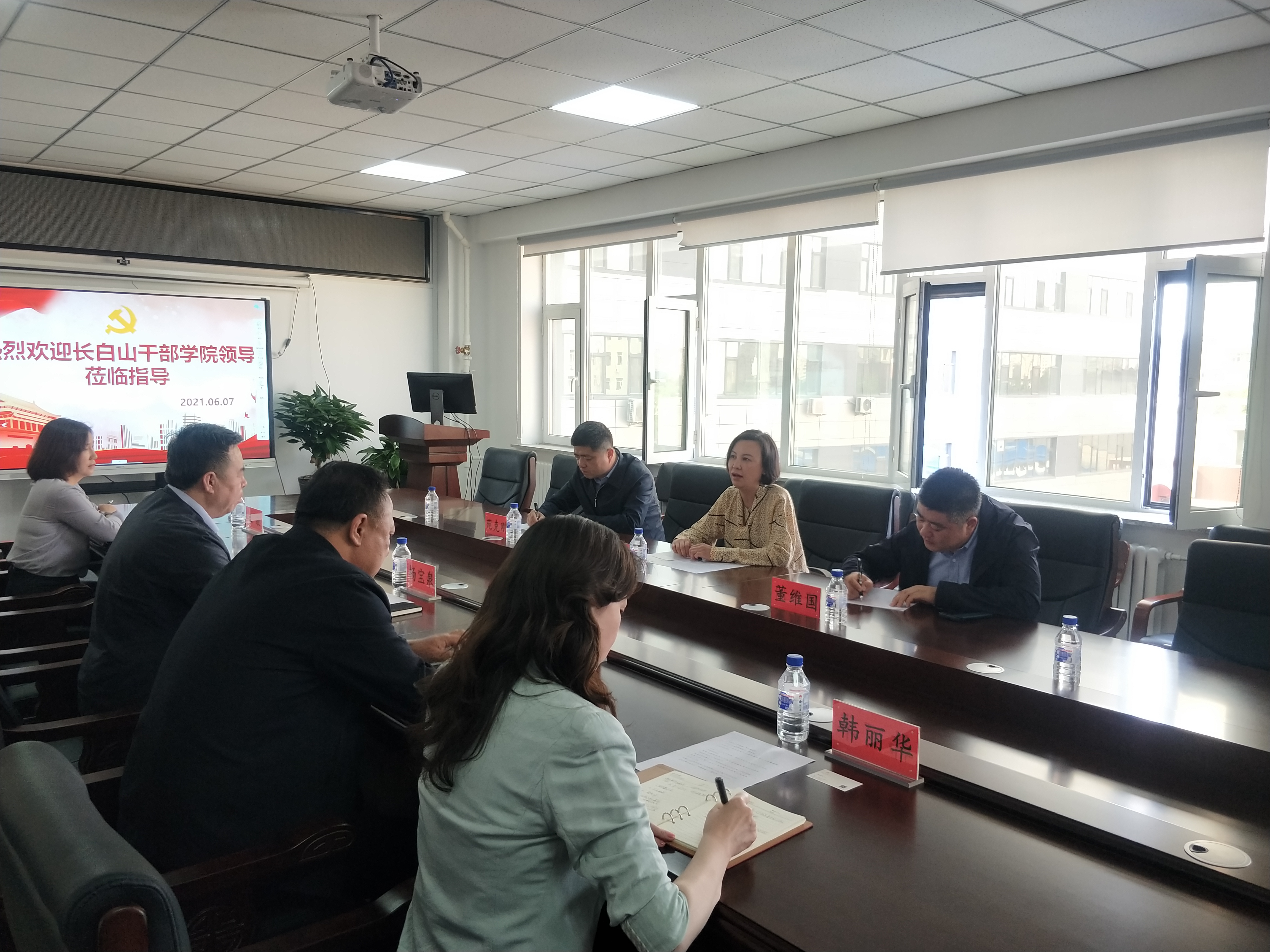 6月7日下午3时,长白山干部公司经理盖莉莉,副经理苑克刚,长白山干部公司培训处教学服务中心主任董维国一行三人来到吉林老员工物与农业工程公司进行工作交流,交流座谈由公司党委书记杨宝泉主持,参加此次交流的还有公司行政副经理韩丽华、行政综合办公室主任王敬,同时还邀请来自永利yl23411东北亚公司、东北亚研究公司党委书记邱松和永利yl23411新能源与环境资源公司党委书记汪祥松参加此座谈。