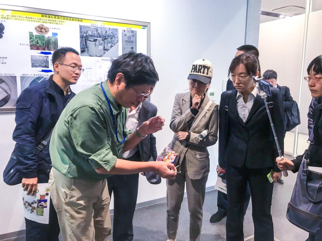国立农研机构遗传资源中心的根本博研究员介绍了日本农业生物资源基因库“Genebank”的基本情况、主要研究方向、作物种子短期及长期保存方法、基因库的建设运行、社会服务等情况,并现场展示了作物基因冷冻处理工艺和基因库的实际操作运行。国立农研机构农业环境变化研究中心的神山和则研究员介绍了农业环境变化中心在农业气候变化应对、农业生物多样性、农业物质循环、农业有害化学物质、农业环境信息技术5个主要研究领域的基本情况及相关技术成就;并现场讲解了日本土壤分类及全国分布情况,以及适合农业生产的主要土壤类型。神山老师还介绍了日本农业重金属镉(Cd)、放射性元素铯(Cs)的污染现状及先进治理技术。国立农研机构农业信息技术研究中心的张煜研究员介绍了日本无人驾驶农业机械发展应用概况、水田作业农业机械作业过程、设施农业机械人采摘收获过程、农作物病虫草害防治技术、日本水稻品种及食品加工等方面的技术进展及应用情况。此外,大家还与日本筑波大学杨英男教授、国立物质材料研究机构陈国平教授,以及日本国立科学博物馆筑波实验植物园的遥千绘研究员进行了交流。