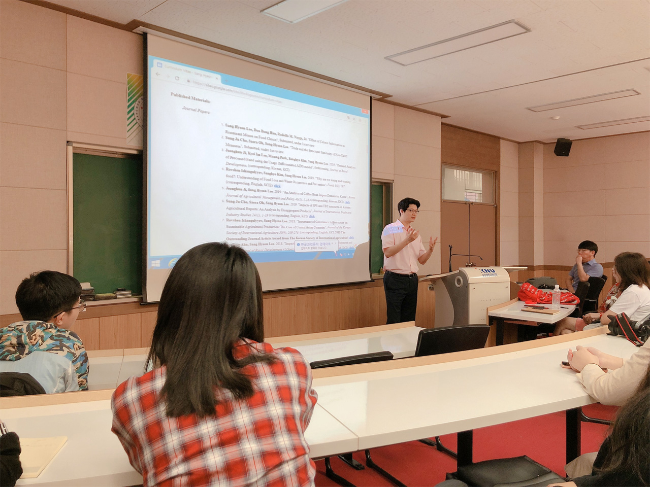 15日,专业老师作了题为“农业到农村——韩国农业政策的变化”的讲座;员工们赴春川的K-pride肉类加工厂学习,期间进行了简单的实践。随后江原大学的老师带领同学们前往江原道进行实地调研,并介绍了韩牛等当地特色农业产业。
