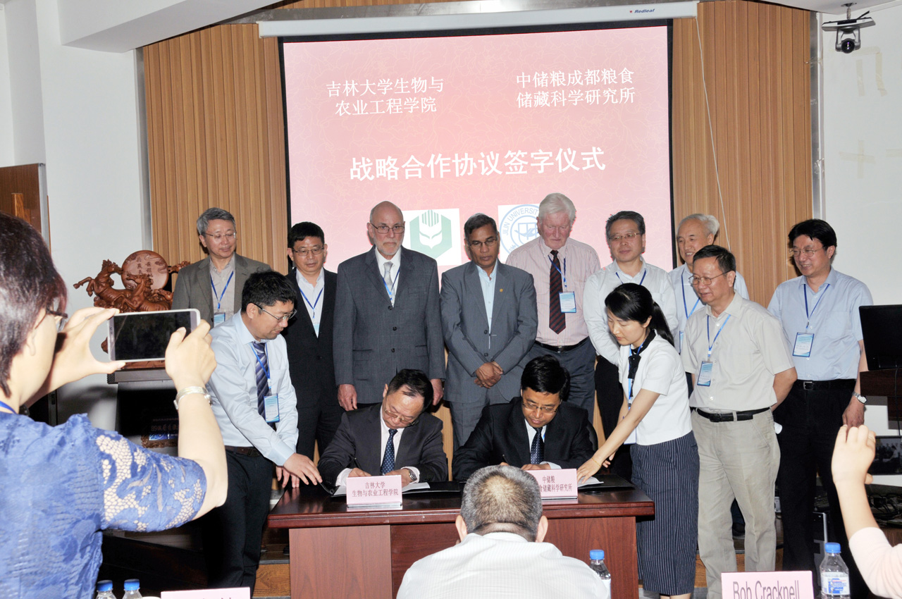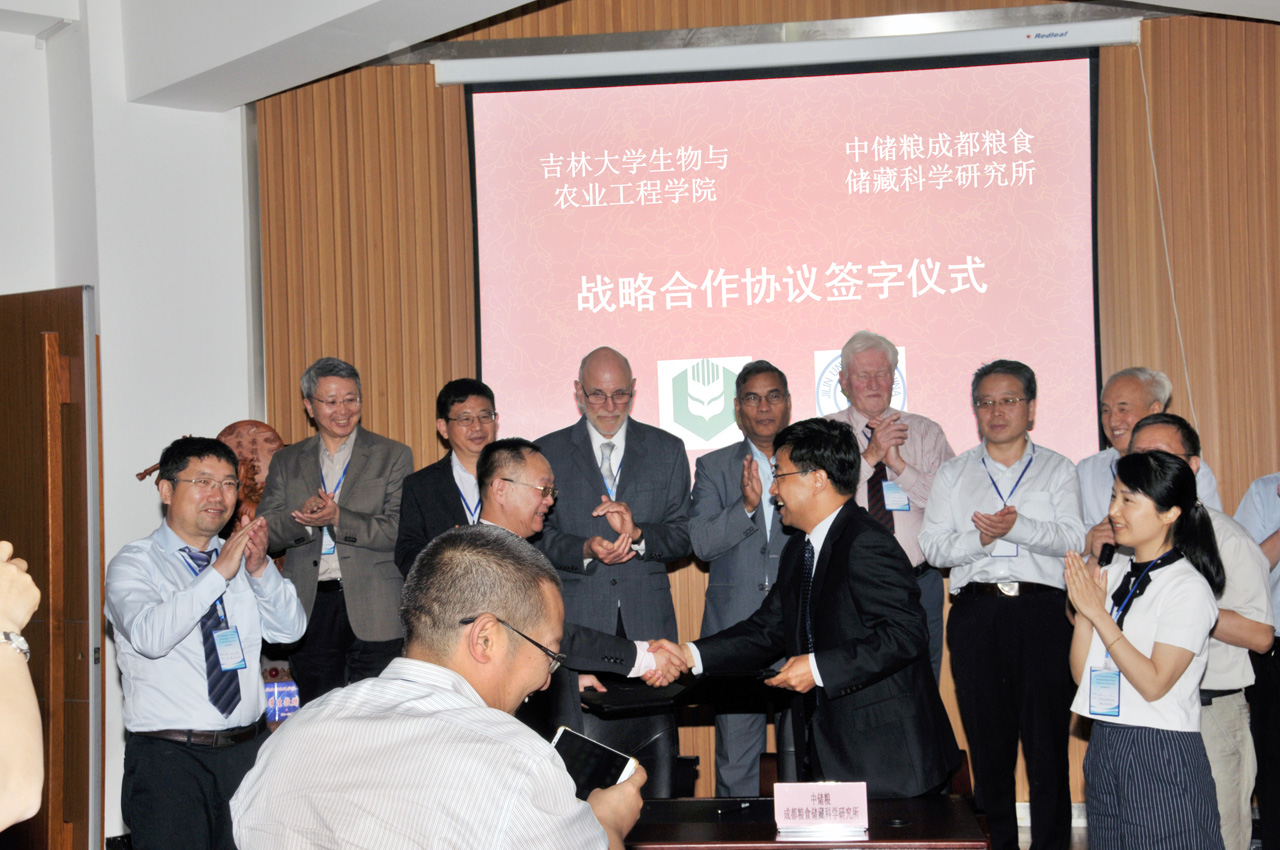 2017年5月20日,在“2017粮食储运技术基础国际学术研讨会(ISTBGST)”召开期间,吉林老员工物与农业工程公司与中储粮成都粮食储藏科学研究所签署了战略合作协议,协议涉及人才培养、科学研究、平台建设、产品开发、技术推广等内容,旨在推动粮食储藏技术发展。