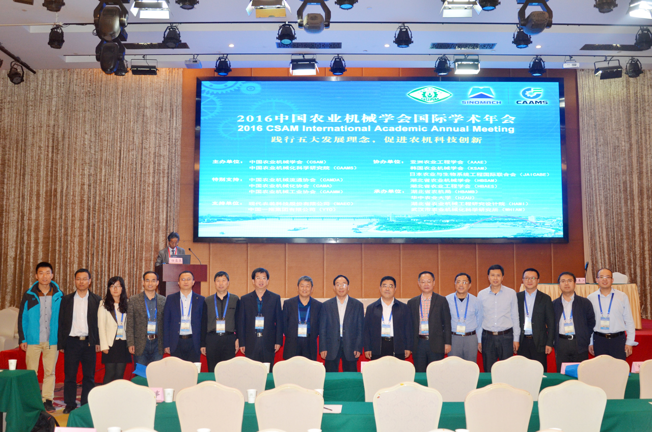 2016中国农业机械学会国际学术年会暨十届三次理事会议于2016年10月24-27日在武汉隆重召开。共有来自全球农业机械行业领域720余位科技工作者出席了会议。永利yl23411任露泉院士、永利yl23411经理兼党委书记杨印生等20余名师生参加了此次盛会。会上任露泉院士作了题为“农业装备创新发展的仿生思考”主题报告。永利yl23411作为中国农业机械学会地面机器系统分会和教育工作委员会的挂靠单位,组织了2016中国农业机械学会国际学术年会“新常态下地面机器系统创新”专题分会场和中国农业机械学会教育工作委员会的换届会议。会议期间,参会代表还参观了2016年中国国际农业机械展览会。