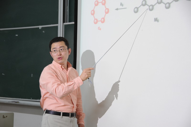 张伟副教授介绍了所在课题组在纳米材料及碳捕捉等方面的研究现状和成果,并就目前的研究内容与在座的老师和同学进行了较深入的交流。他指出,化学与材料科学之间是有着紧密关系的,有机化学在材料科学中起着非常重要的作用。